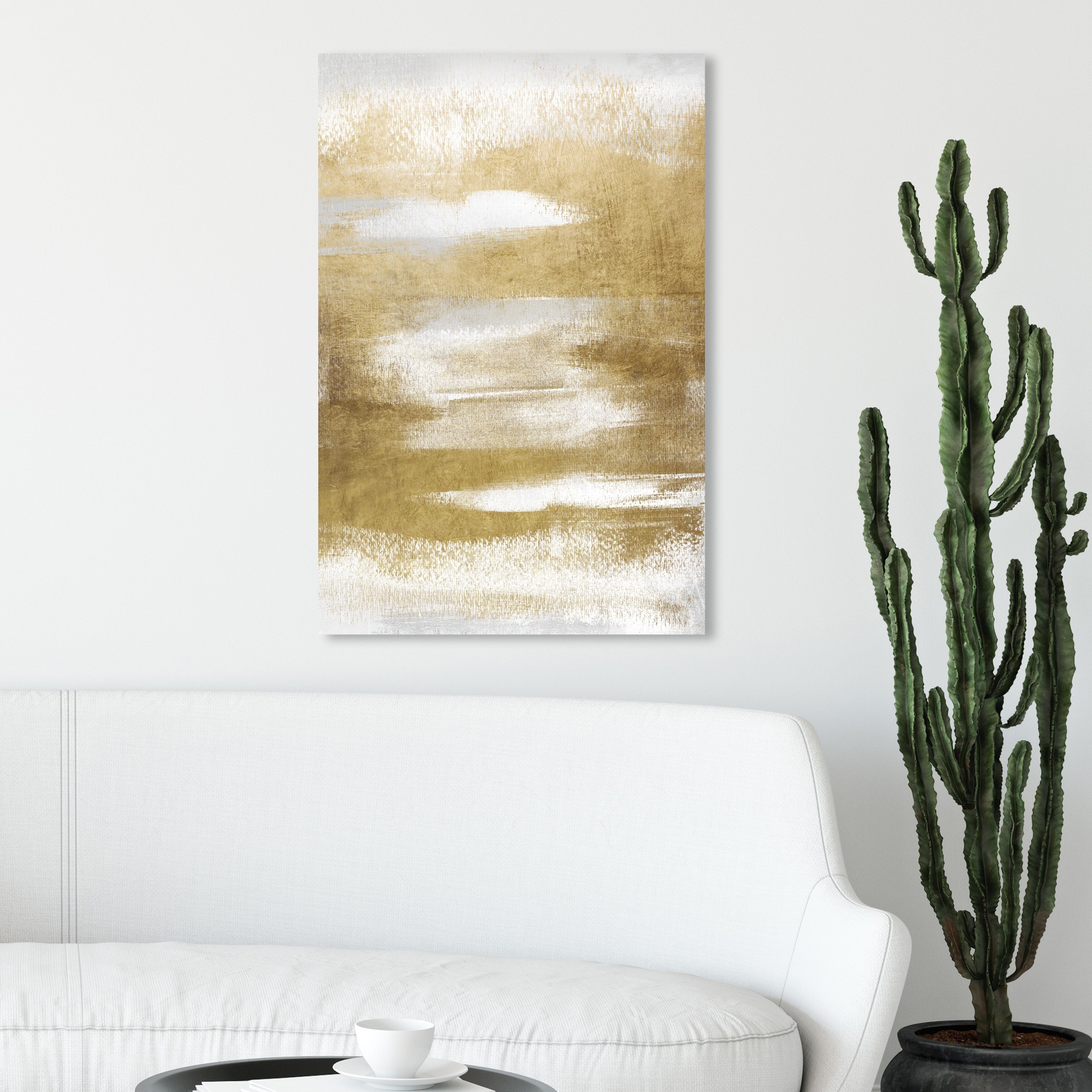 Oliver Gal 'Earthship Birch I' Abstract Wall Art Framed Canvas Print Paint - Gold, White