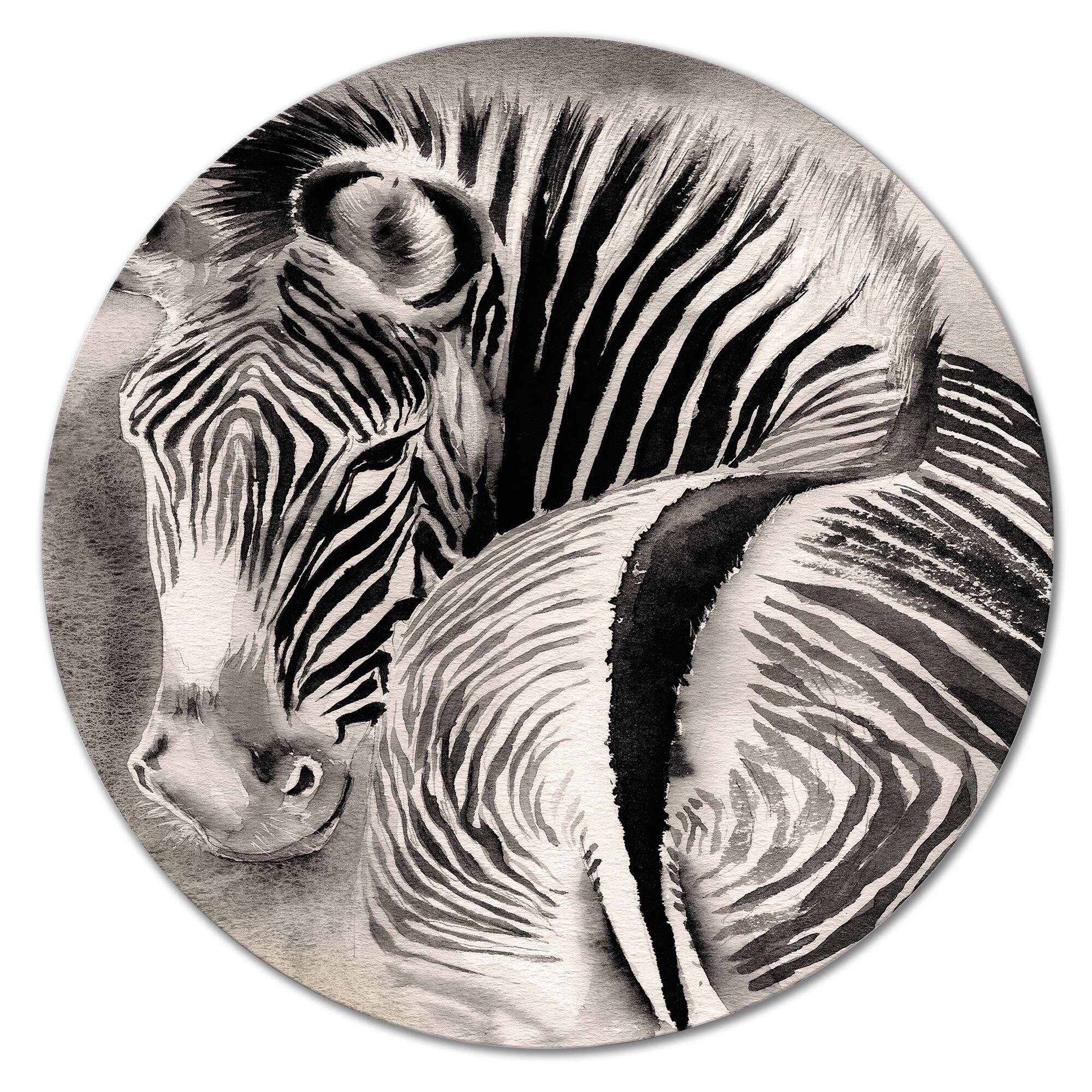 Designart 'Zebra With Contrasting Black And White Stripes IV' Traditional Metal Circle Wall Art