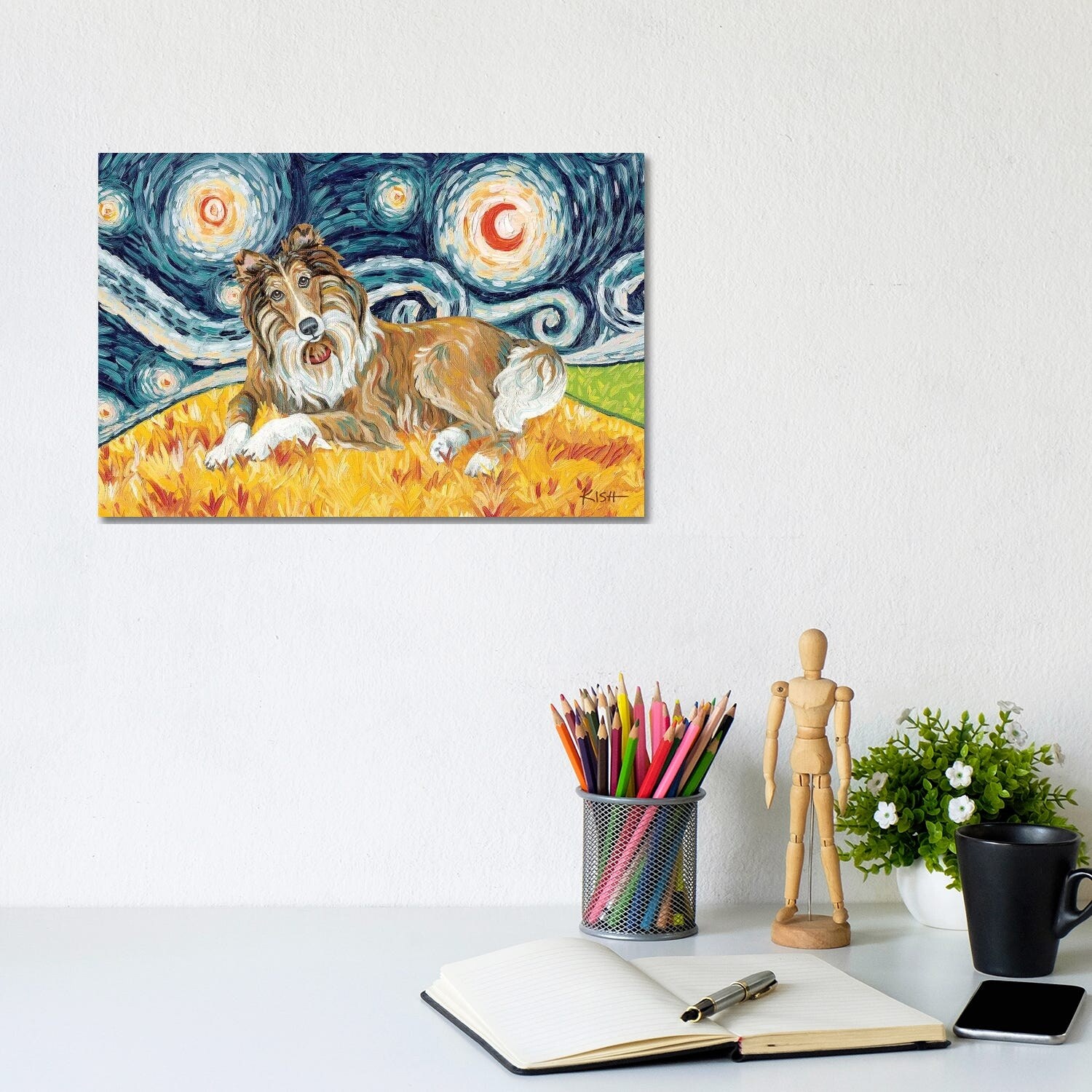 iCanvas "Collie On A Starry Night White Stripe" by Gretchen Kish Serrano Canvas Print