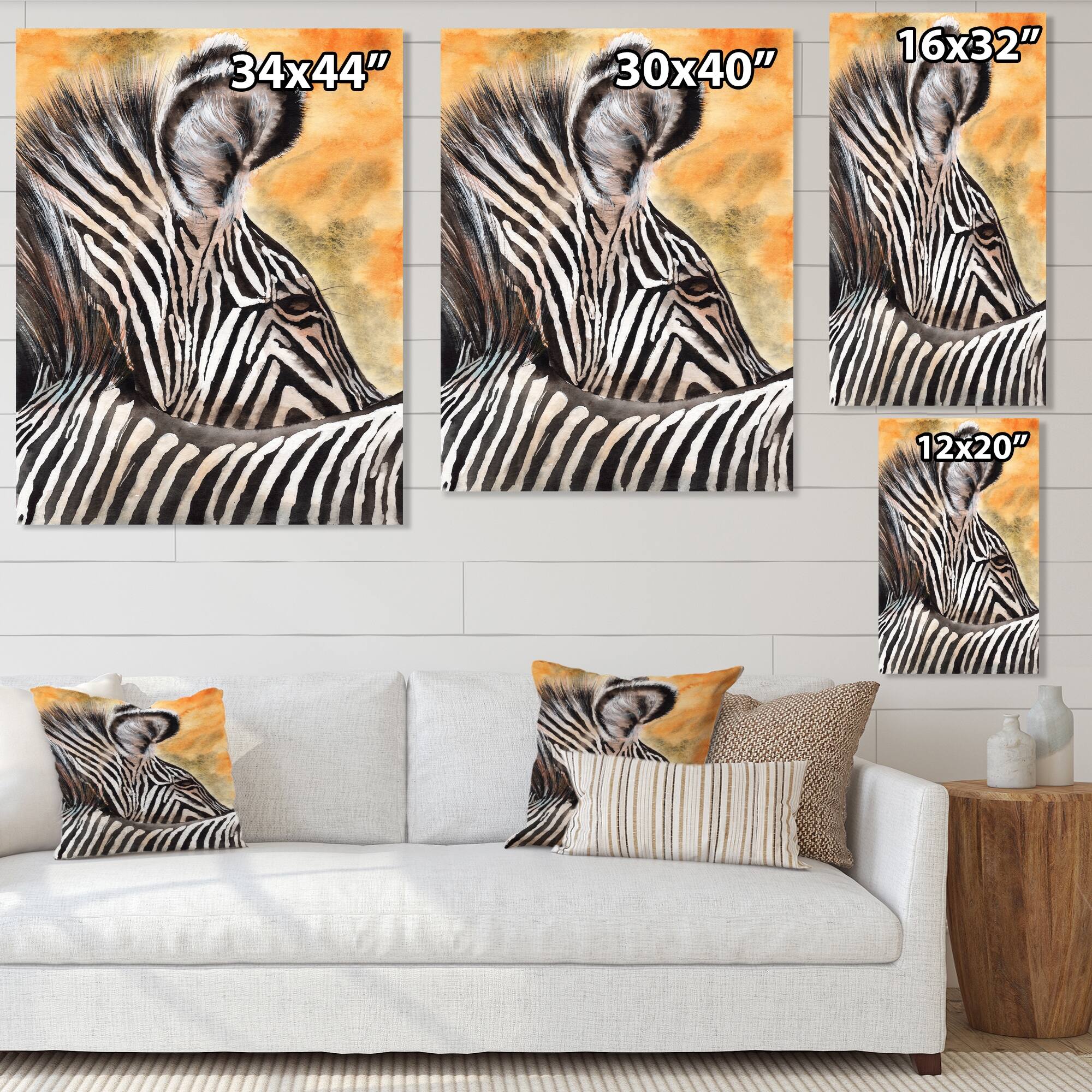 Designart "Zebra With Contrasting Black And White Stripes V" Traditional Canvas Wall Art Print