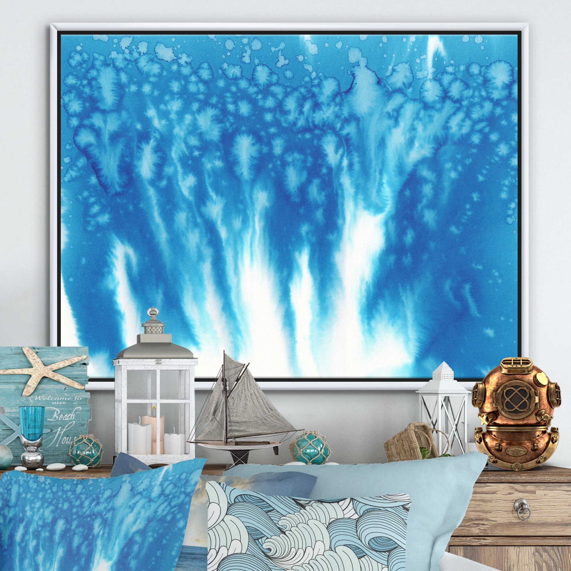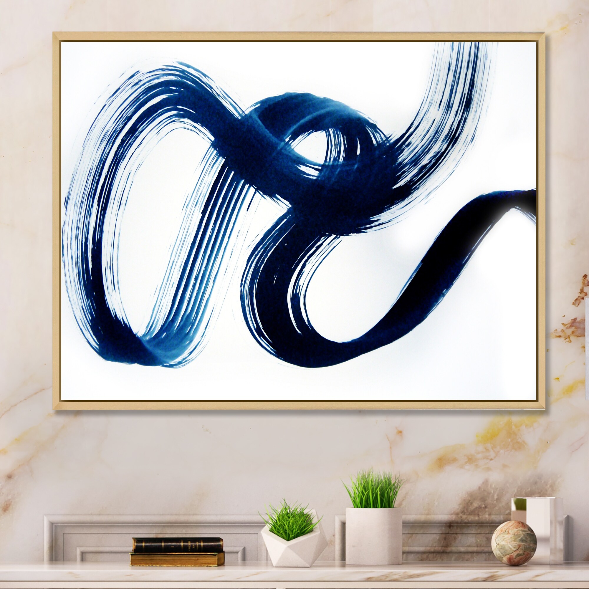 Designart "Blue Harmonious Wind Abstract" Modern Framed Canvas Wall Art