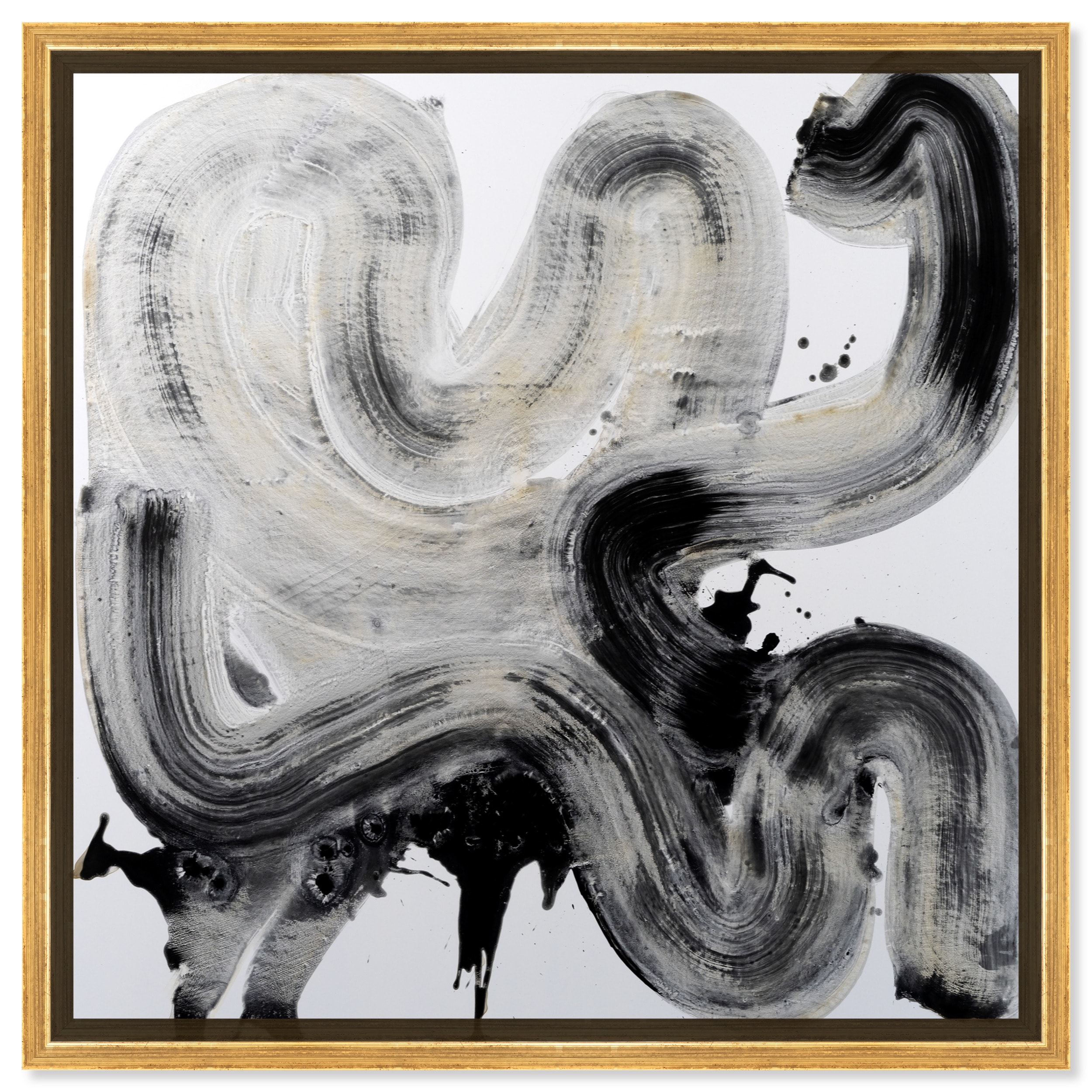 Winding Path, Swirls and Curves Modern Black Canvas Wall Art Print for Living Room