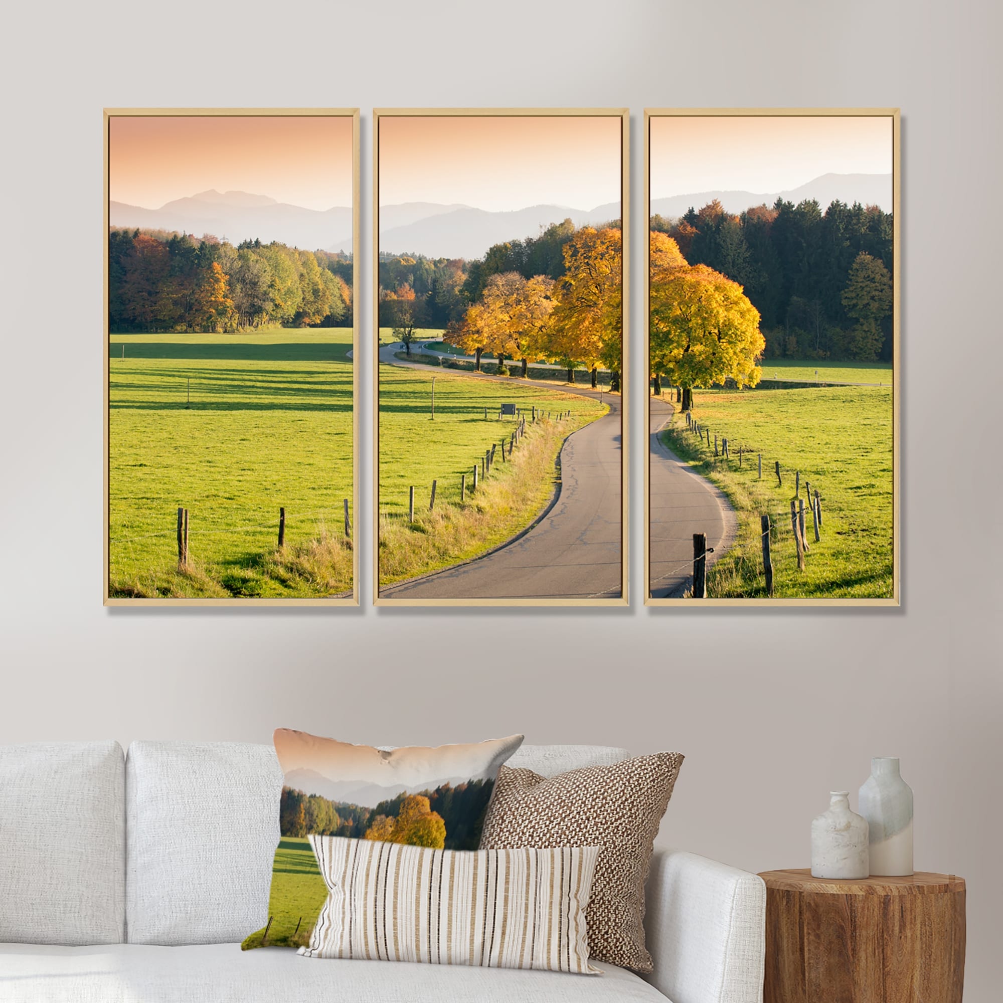 Designart "Winding Country Road in the Fall" Landscape Framed Artwork Set of 3 - 4 Colors of Frames