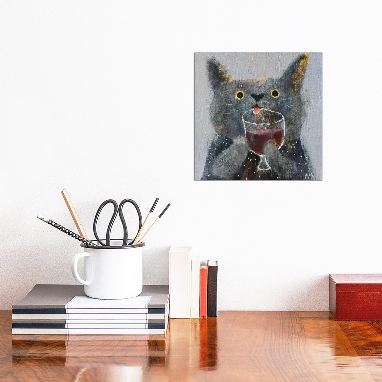 iCanvas "The Cat With Glass of Wine" by Natalia Shaloshvili Canvas Print