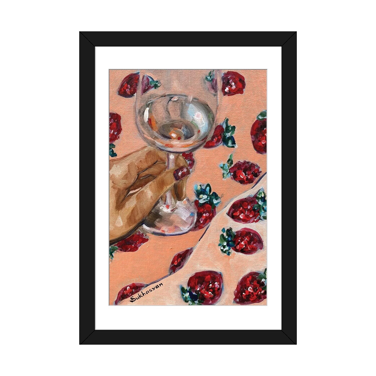 iCanvas "The Glass of Wine And Glittery Strawberries" by Victoria Sukhasyan