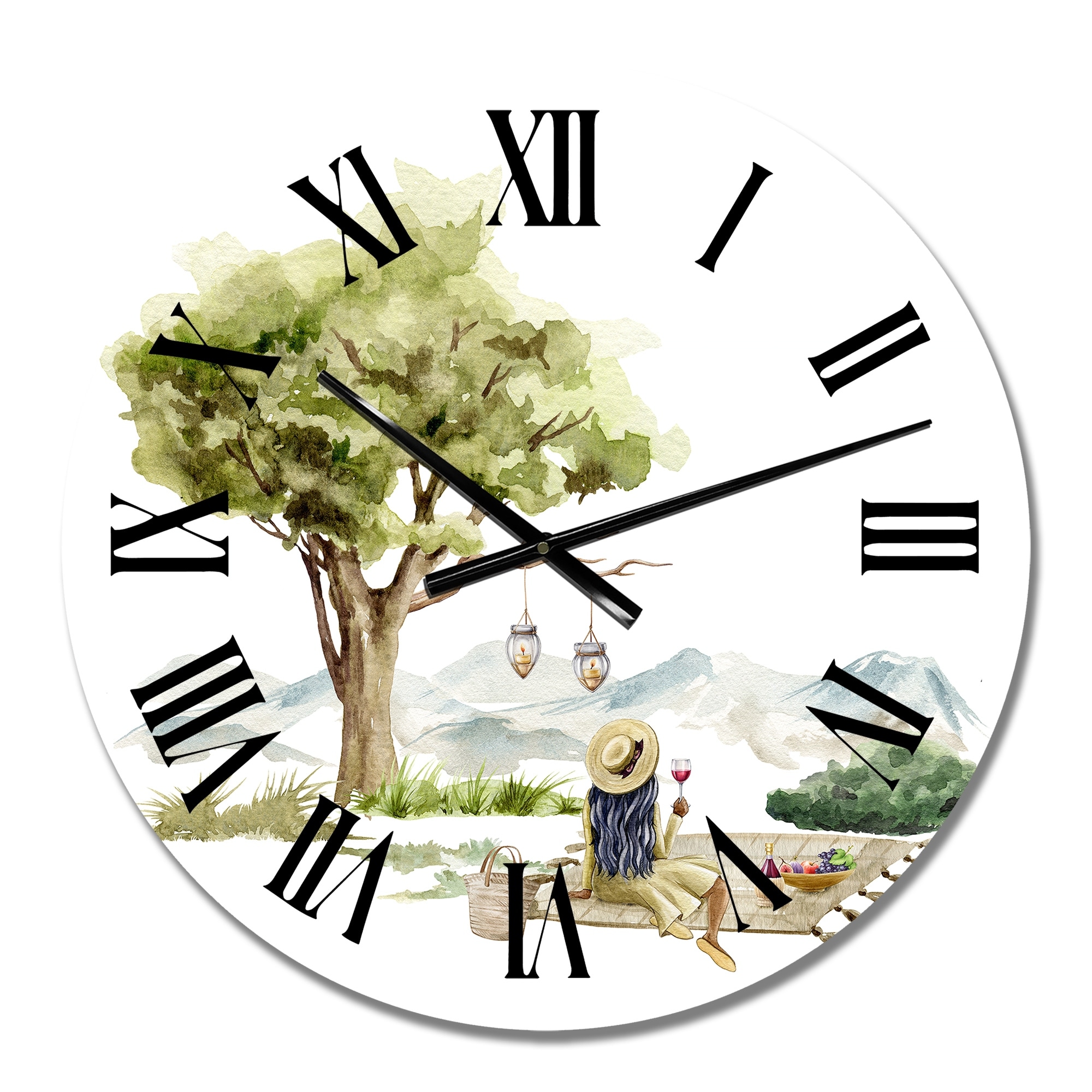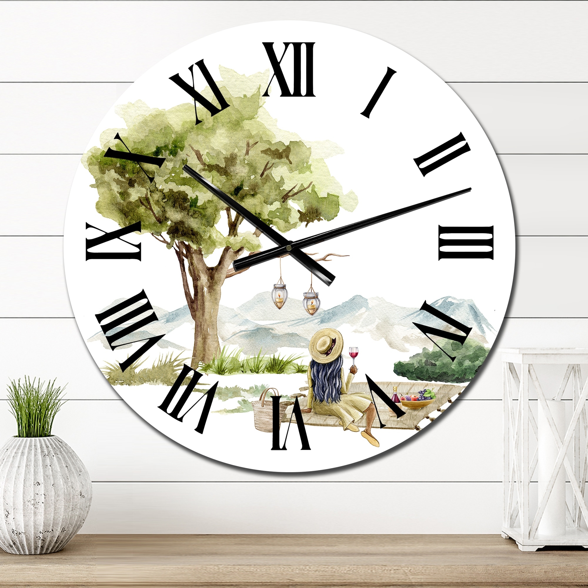 Designart 'Young Girl Sitting With A Glass of Wine Under Tree' Country wall clock