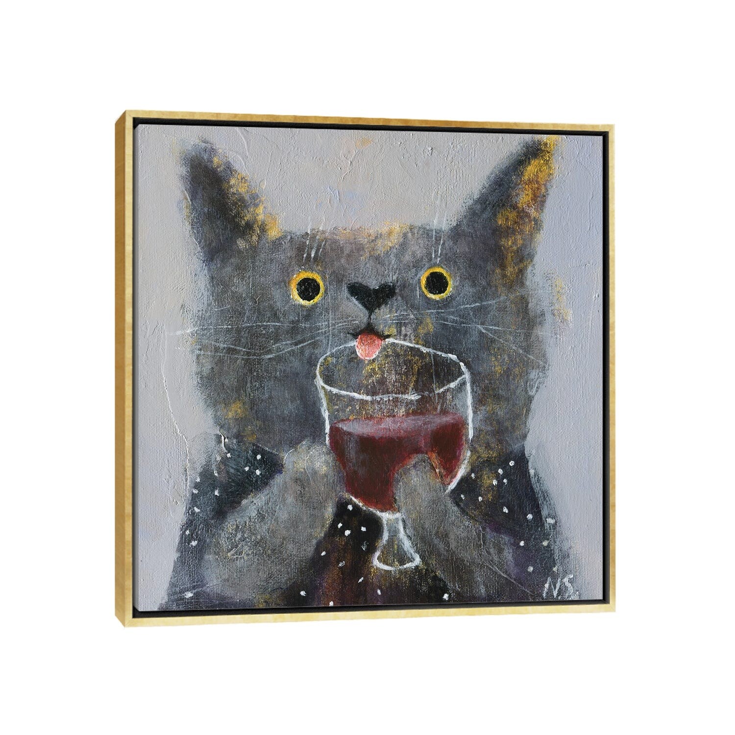 iCanvas "The Cat With Glass of Wine" by Natalia Shaloshvili Framed