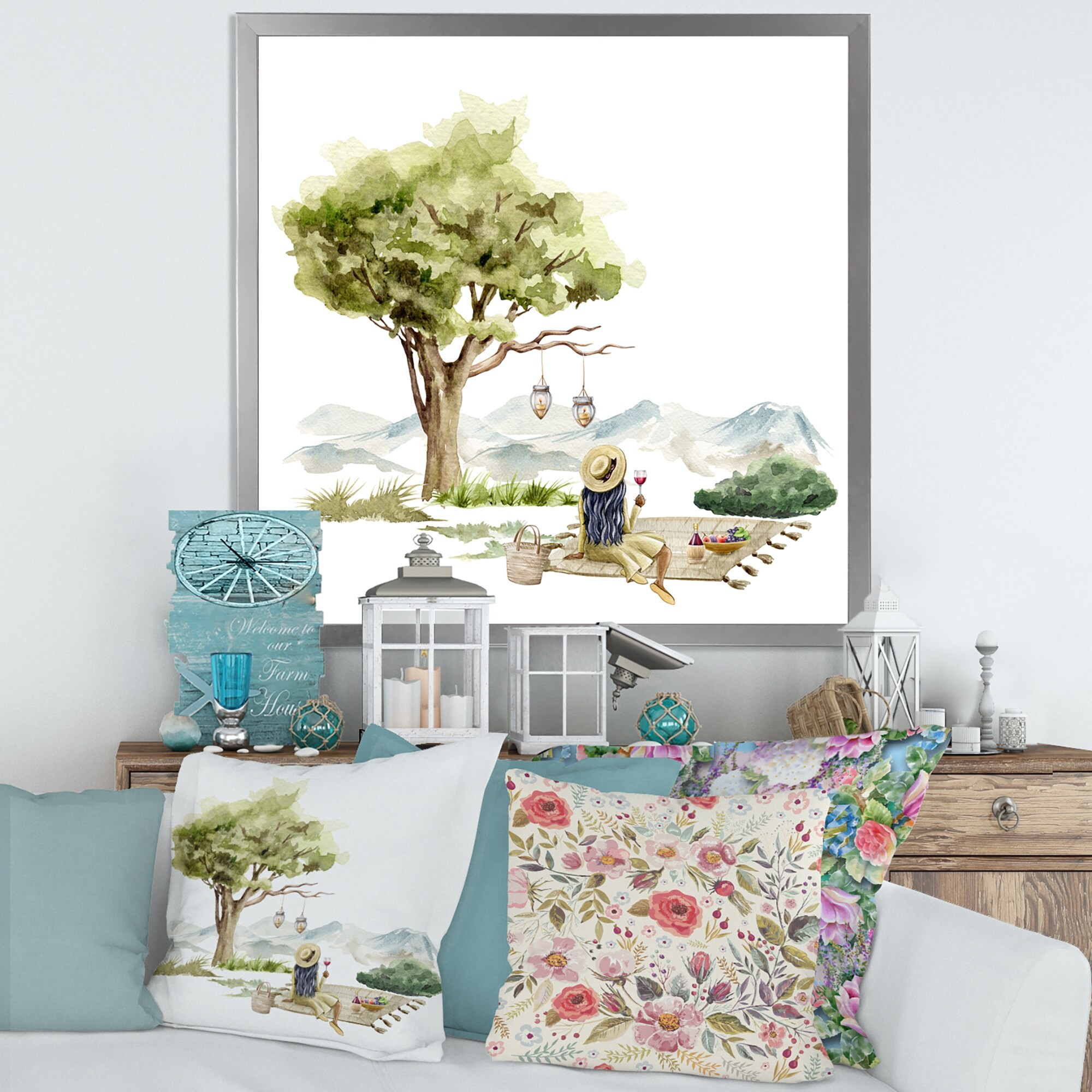Designart "Young Girl Sitting With A Glass of Wine Under Tree" Country Framed Art Print