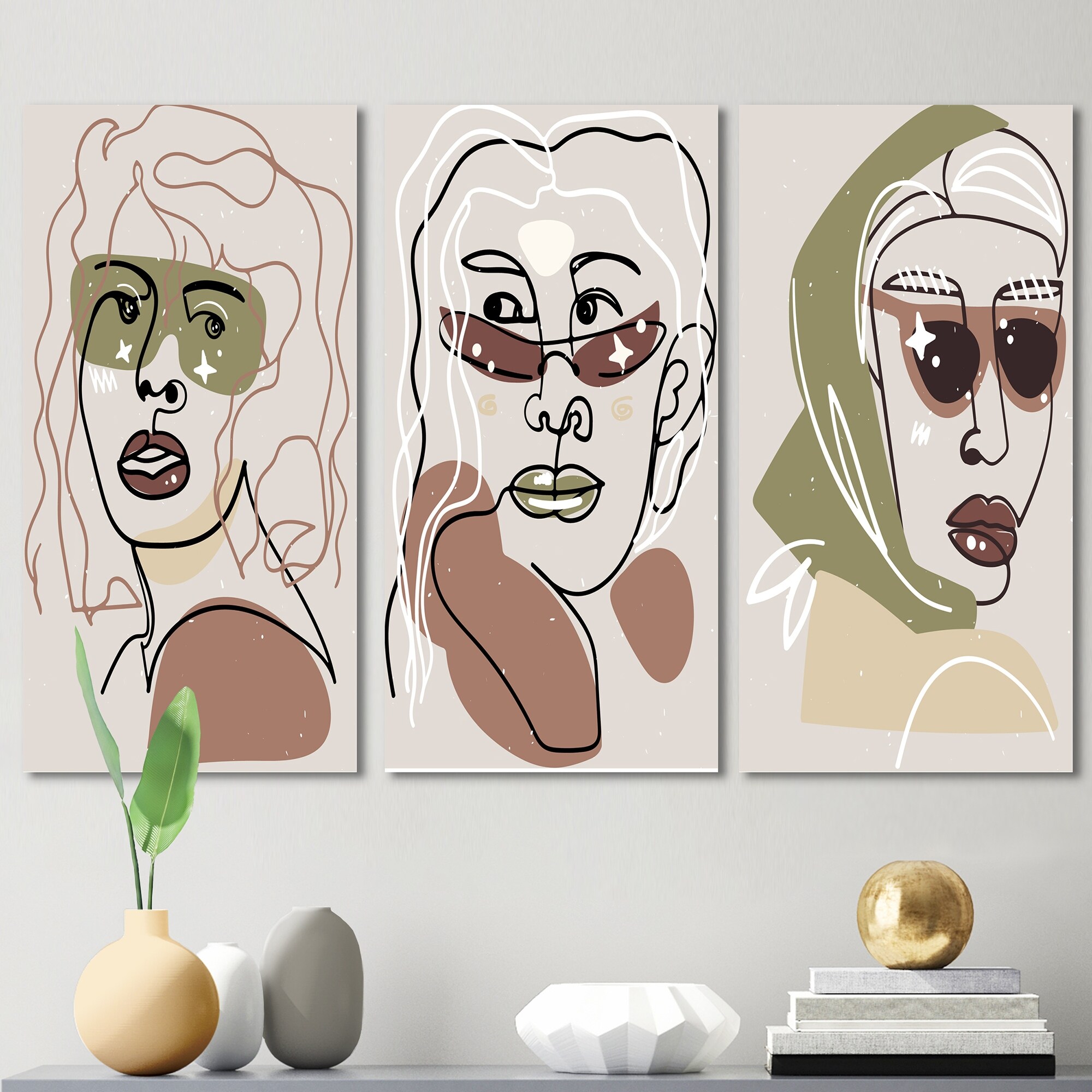 Designart 'Pop Art Retro Woman Portrait Minimalistic II' Mid-Century Modern Art Set of 3 Pieces