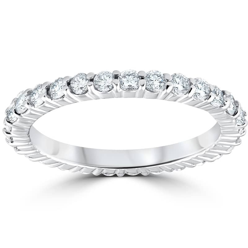 14k White Gold 1 Ct TDW Diamond Eternity Ring Womens Stackable Wedding Engagement Band