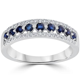 14k White Gold 5/8 cttw Blue Sapphire & Diamond Wedding Ring Womens Anniversary Band