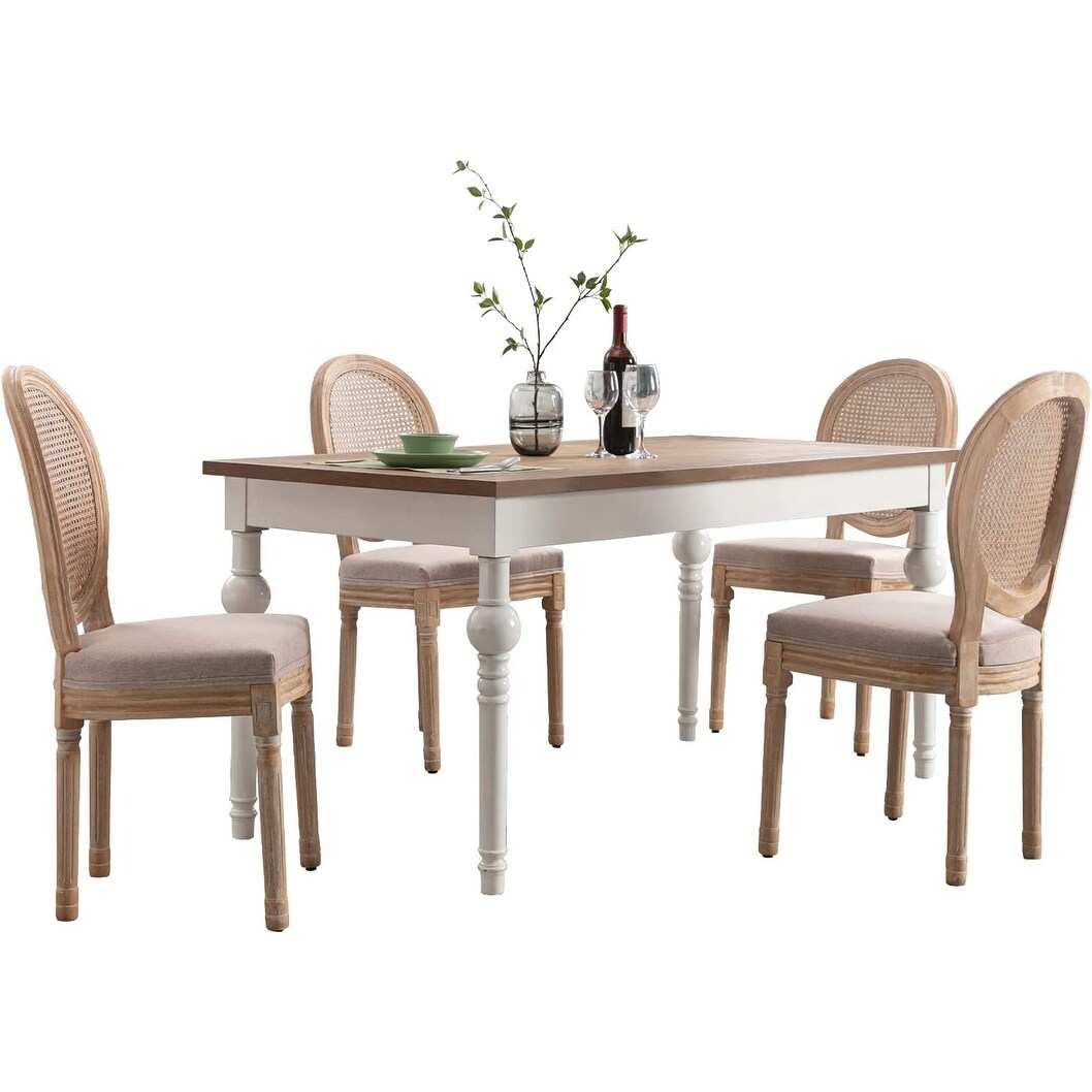 Mixoy Upholstered Dining Chairs with Rattan Back&Solid Wood Frame