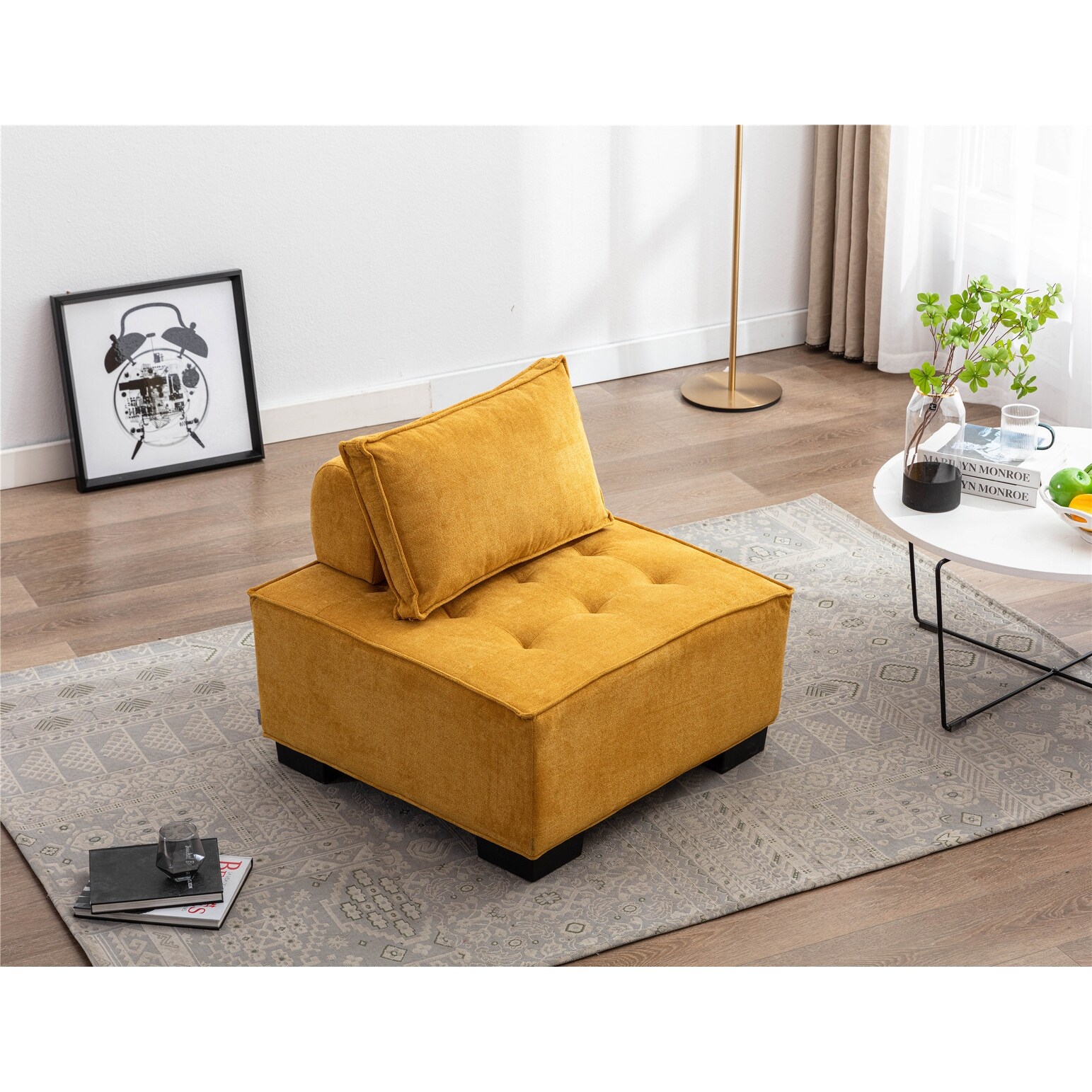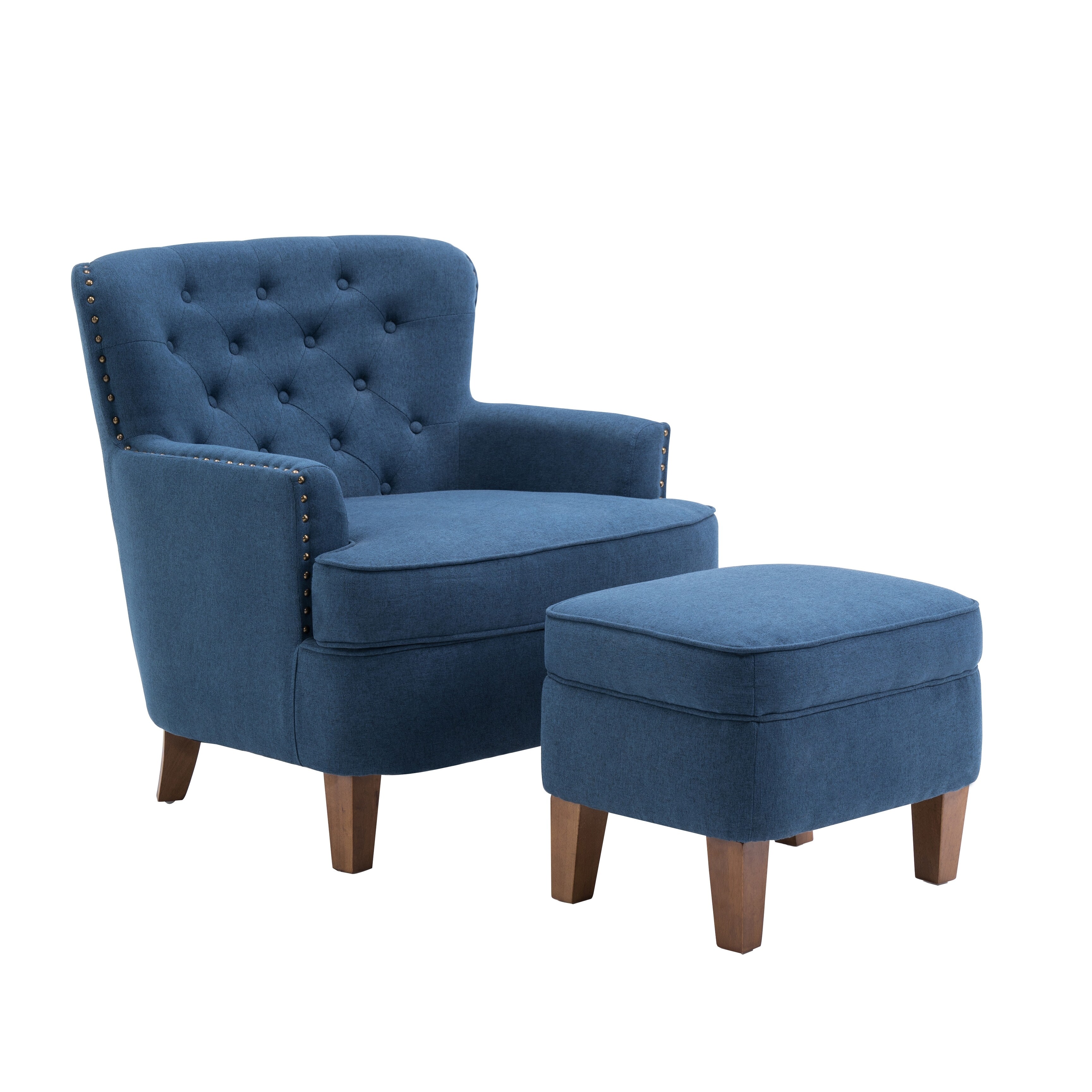 Chair & Ottoman Sets,Modern Fabric Single Sofa Chair, Comfortable Armchair with Solid Wood Legs, Tufted Chair