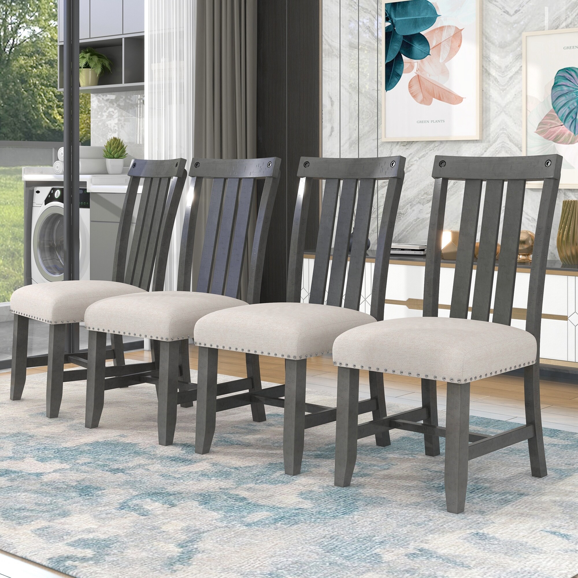 Fabric Upholstered Dining Chairs with Solid Wood Legs