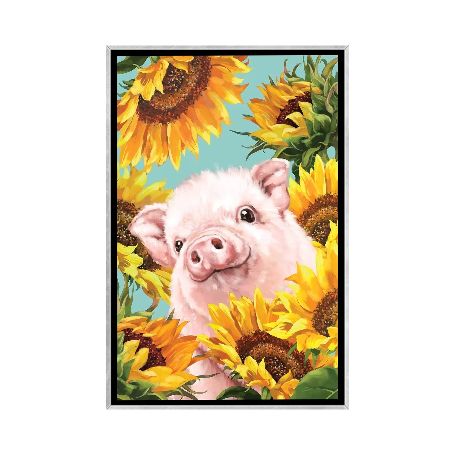 iCanvas "Baby Pig With Sunflower" by Big Nose Work Framed