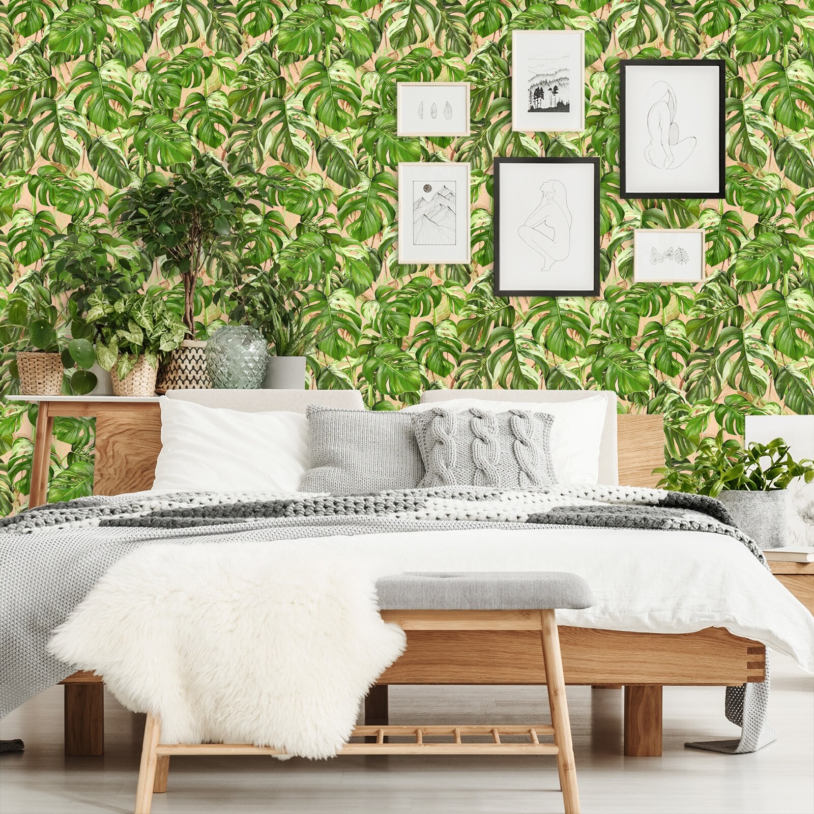 18' L x 24" W Peel & Stick Wallpaper Roll - Monstera by DecoWorks - 18' x 24"