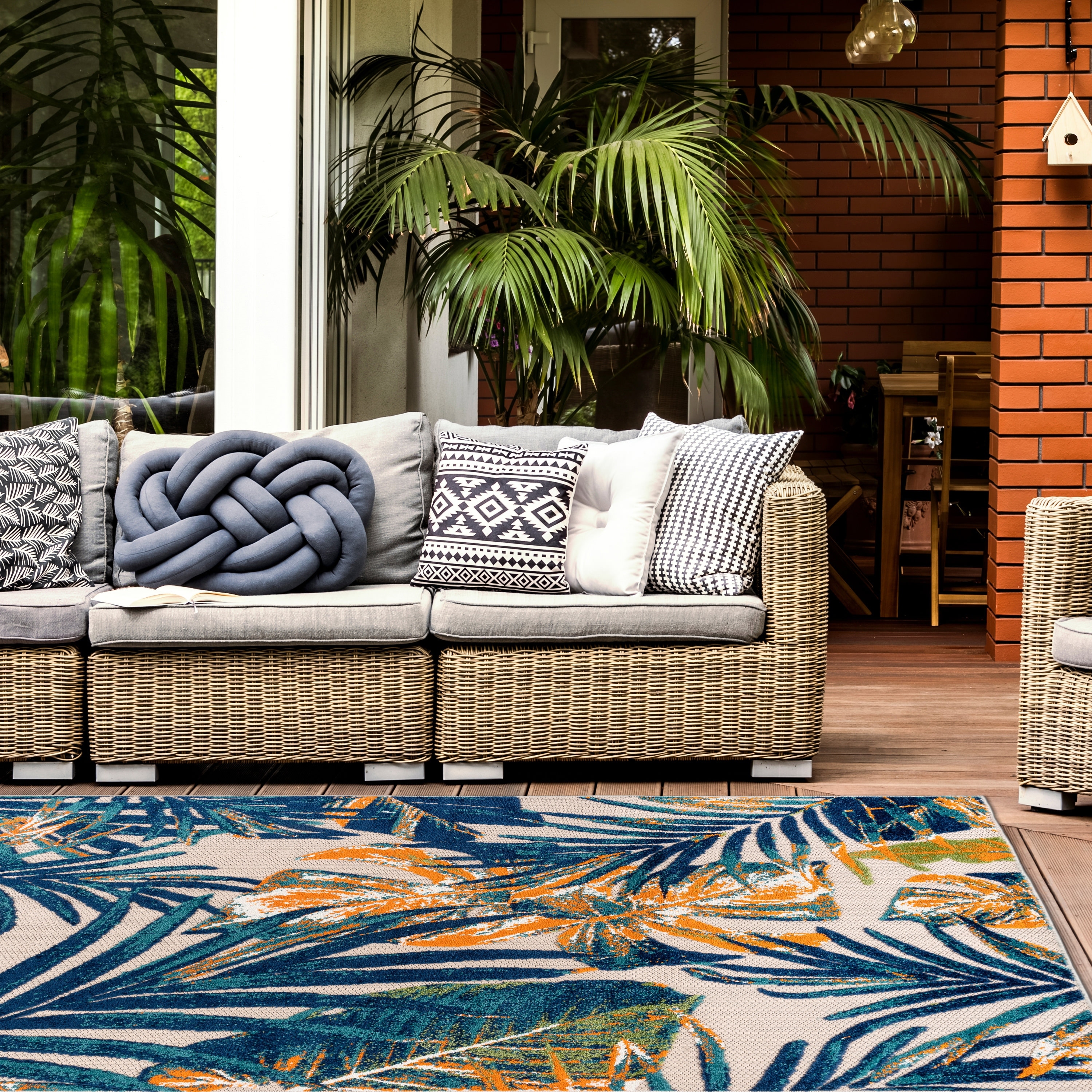 World Rug Gallery Contemporary Palm Leaves Textured Flat Weave Indoor/Outdoor Area Rug