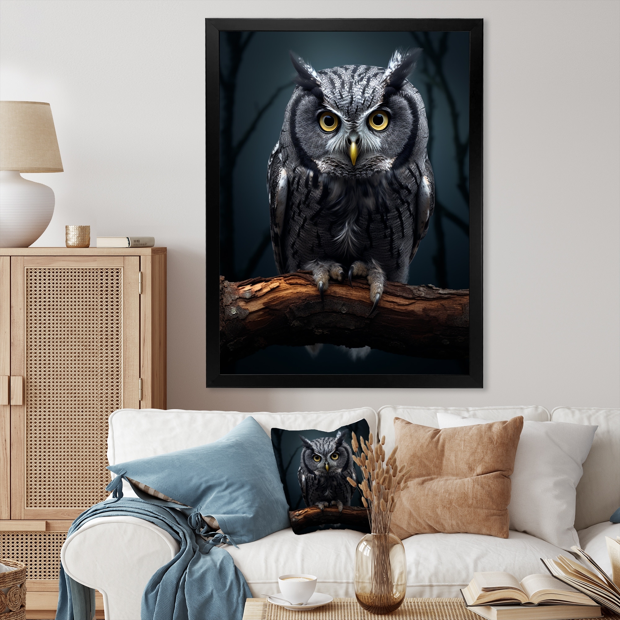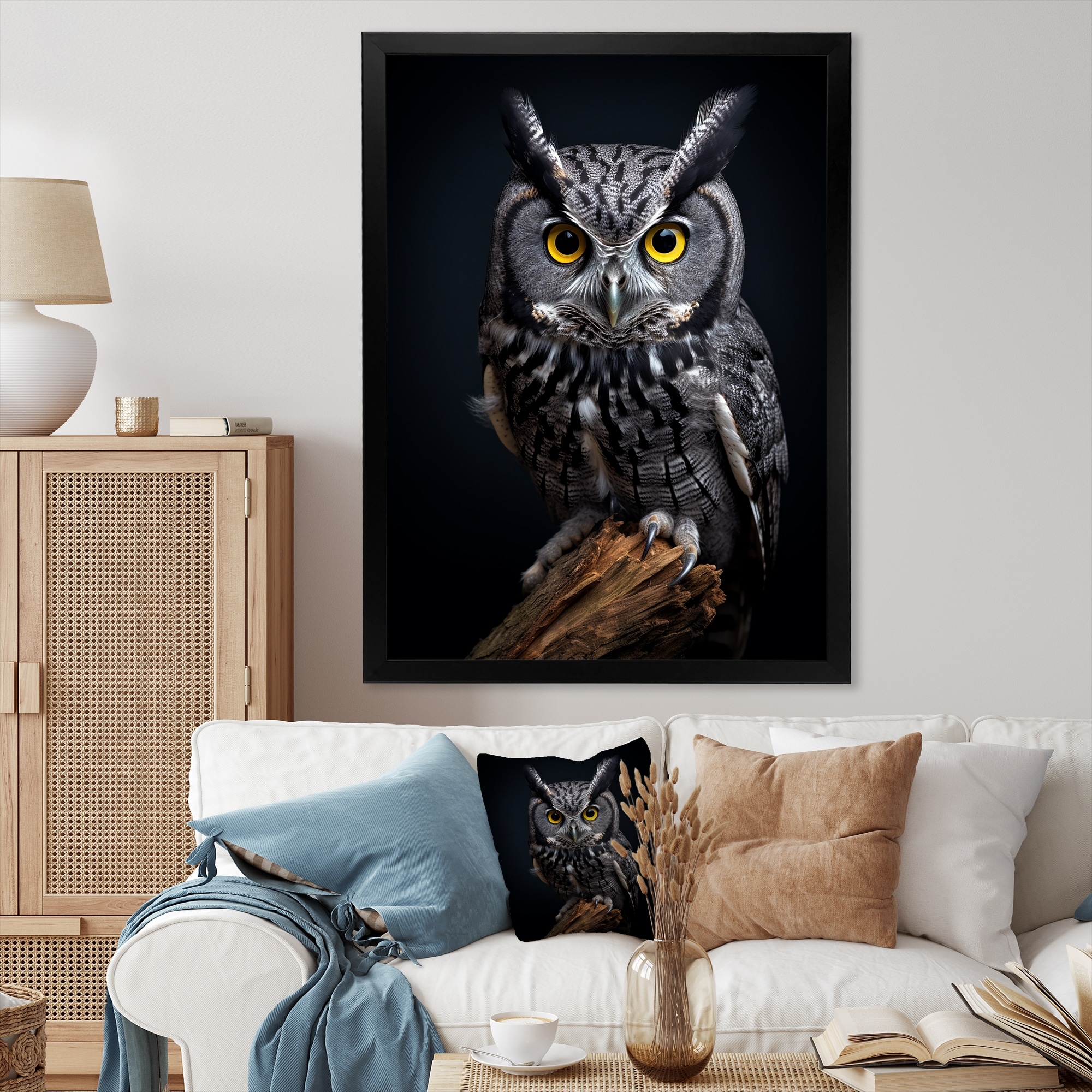 Designart "Black White Curious Eyes Owl I" Animals Owl Framed Wall Art Living Room