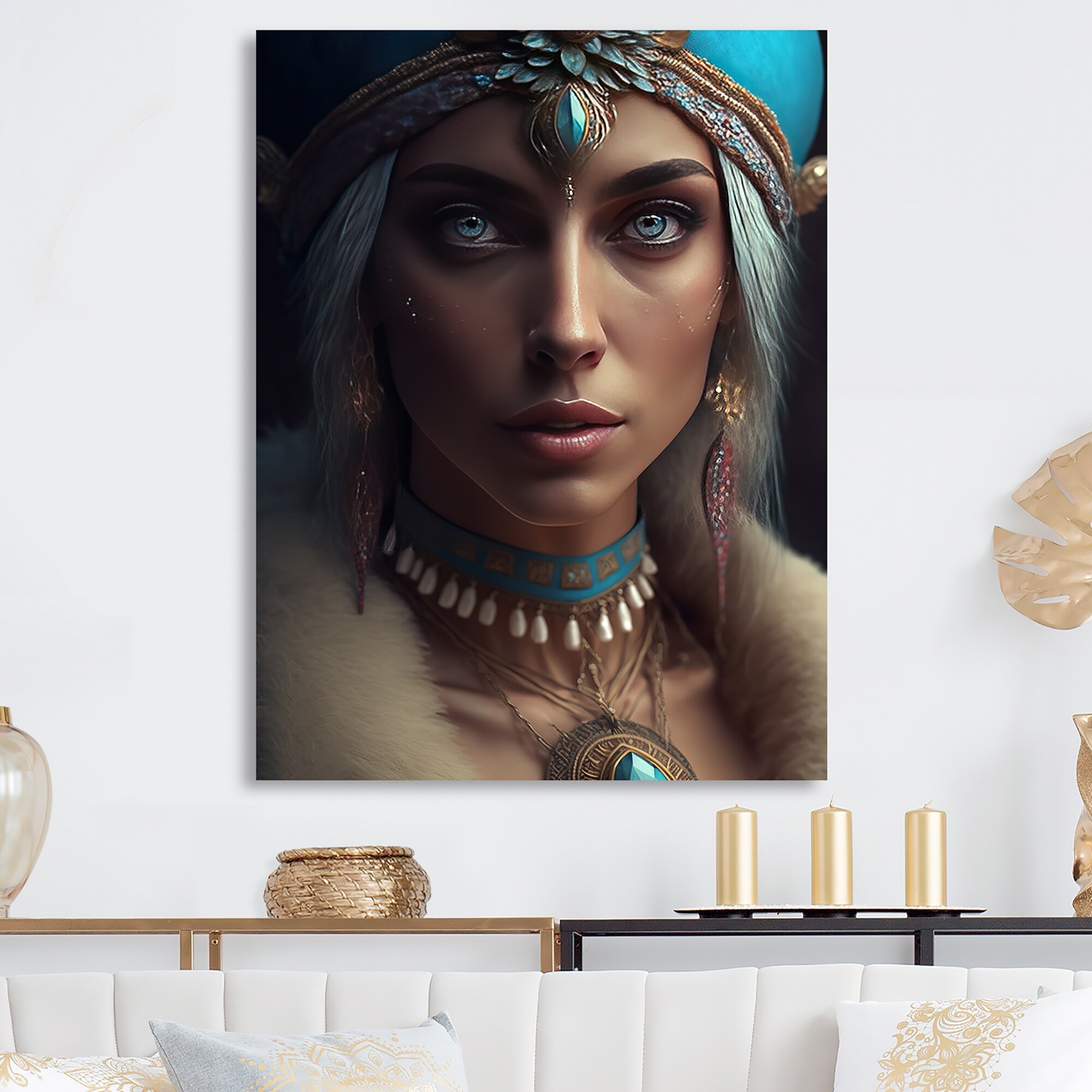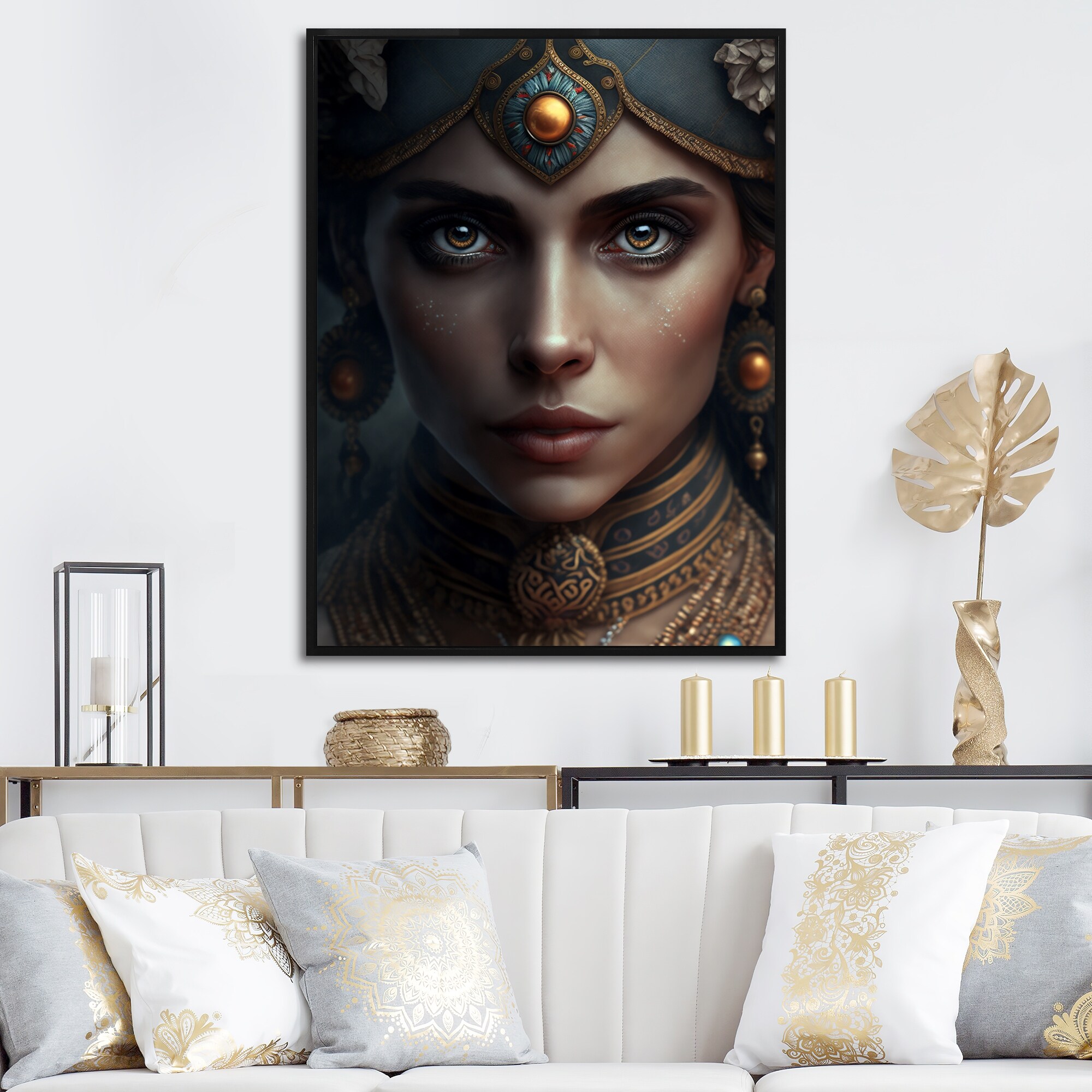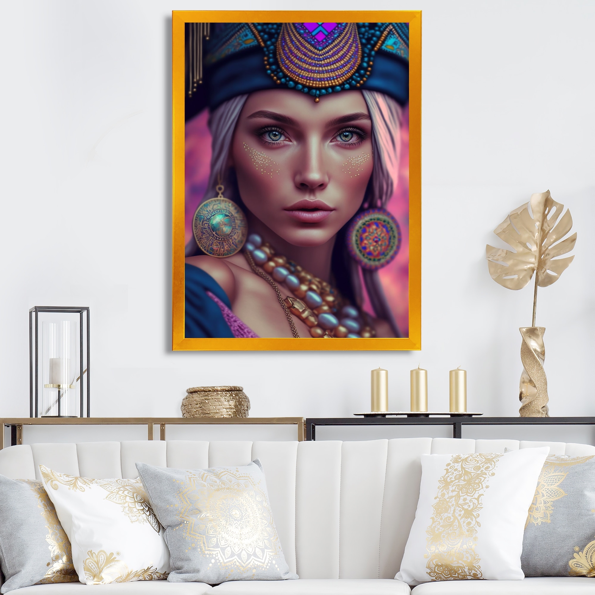 Designart "Bohemian Woman With Blue Eyes VIII" Boho Woman Framed Canvas Wall Art