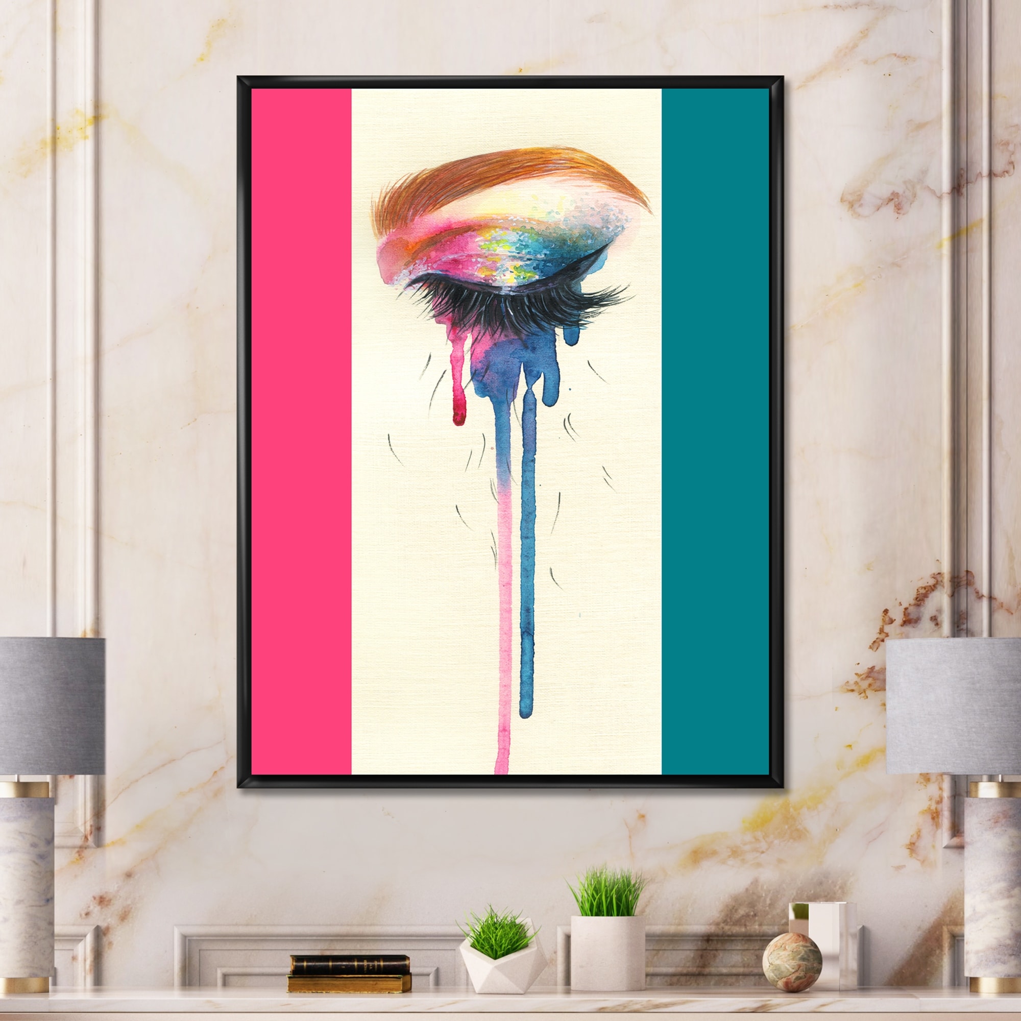 Designart "Stop To Cry Eyes With Vivid Make Up" Glam Framed Canvas Wall Art