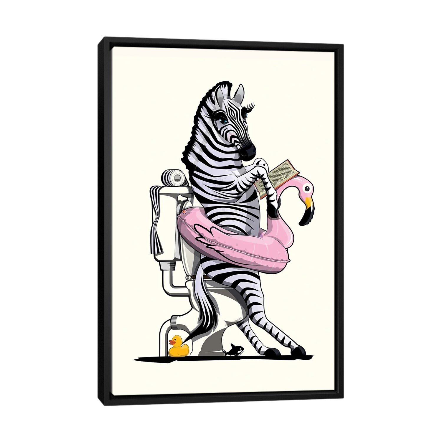 iCanvas "Zebra Baboon on the Toilet" by WyattDesign Framed Canvas Print