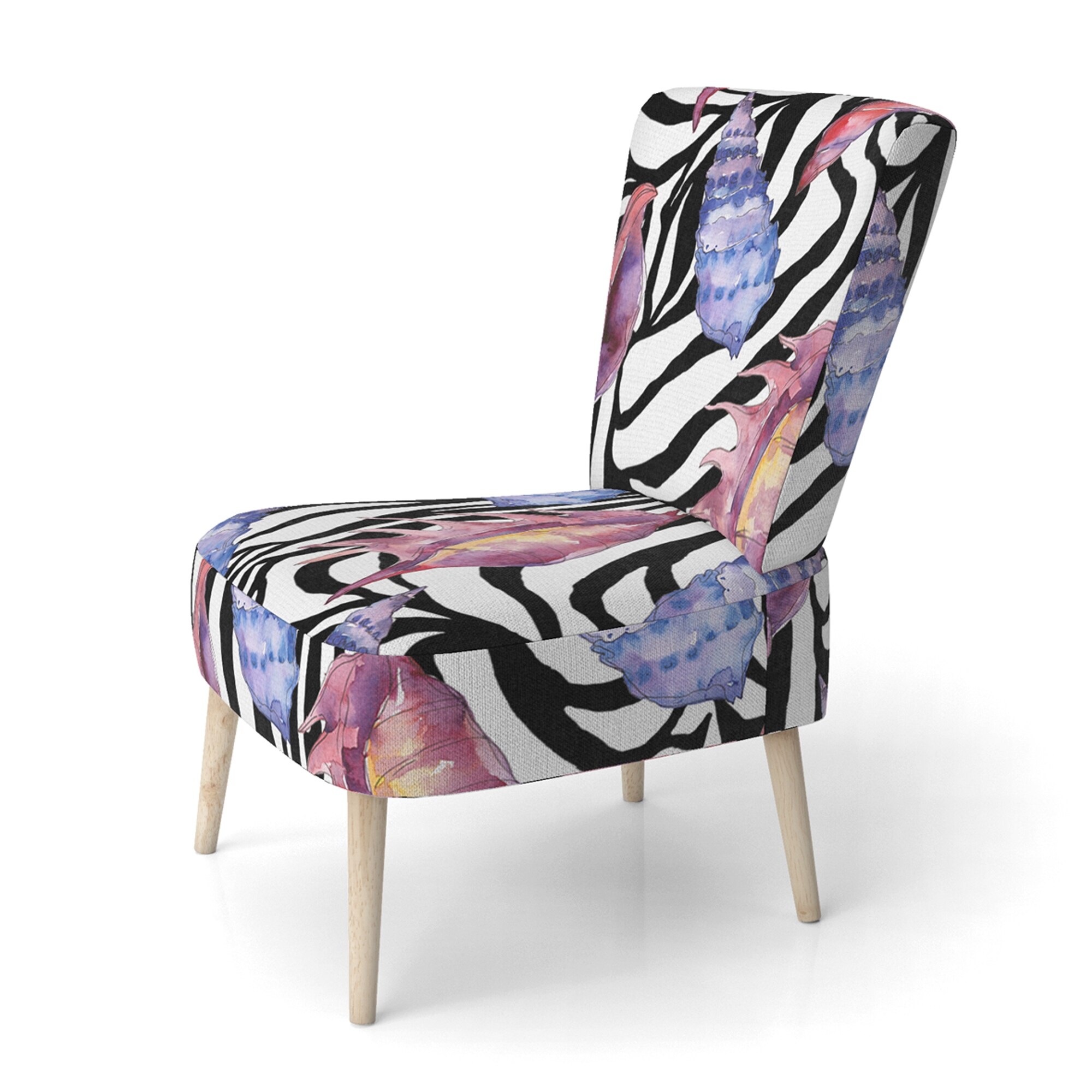 Designart "Blue and Purple Seashells on Zebra I" Upholstered Cabin & Lodge Accent Chair and Arm Chair