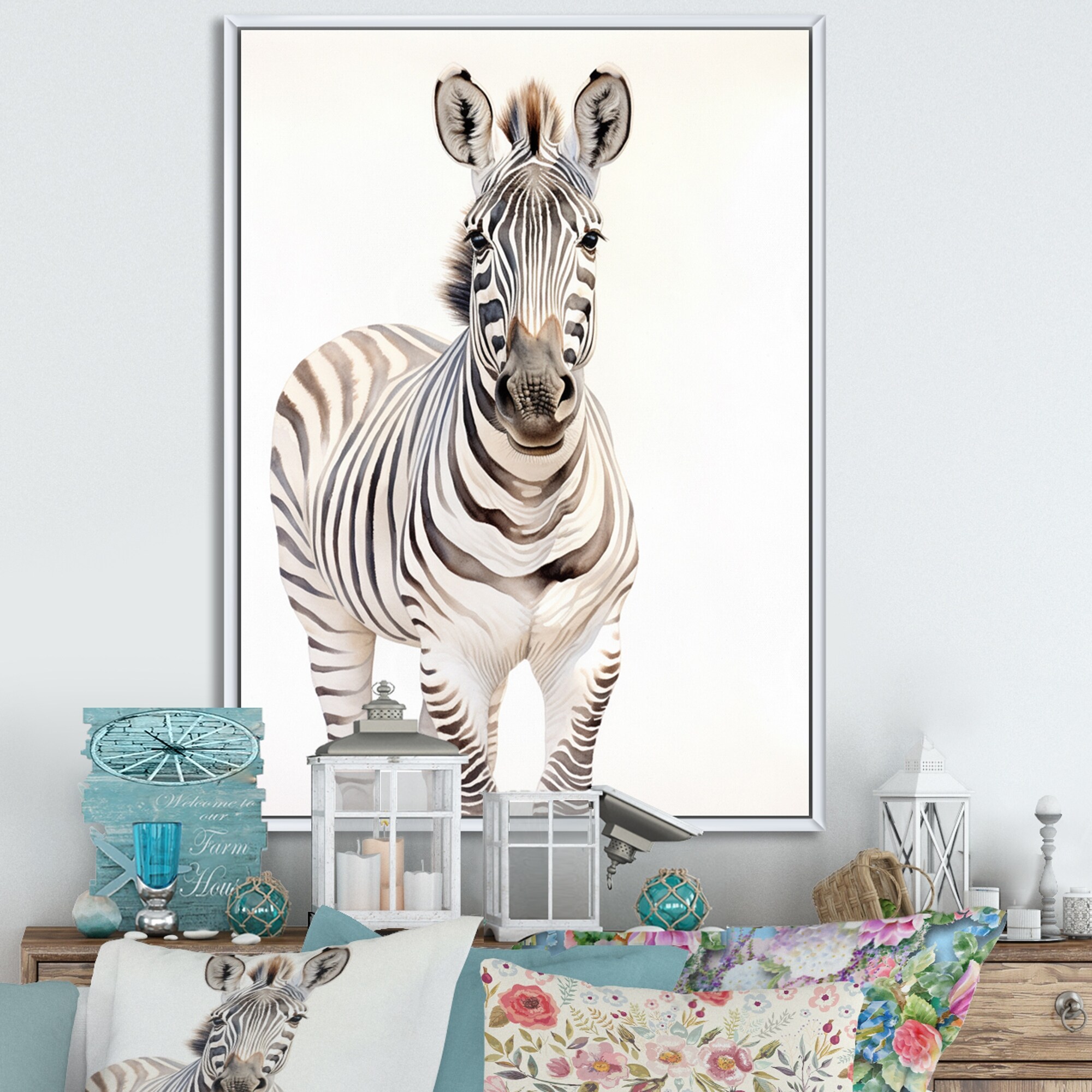 Designart "Zebra Watercolor Zebra This" Animals Zebra Framed Canvas Prints