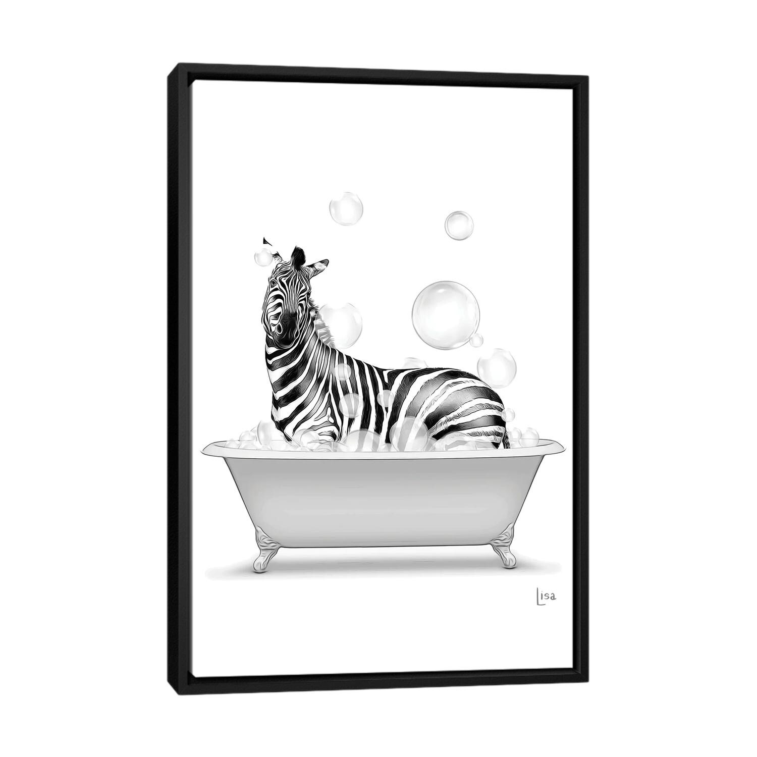 iCanvas "Zebra In Bathtub With Bubbles" by Printable Lisa's Pets Framed Canvas Print