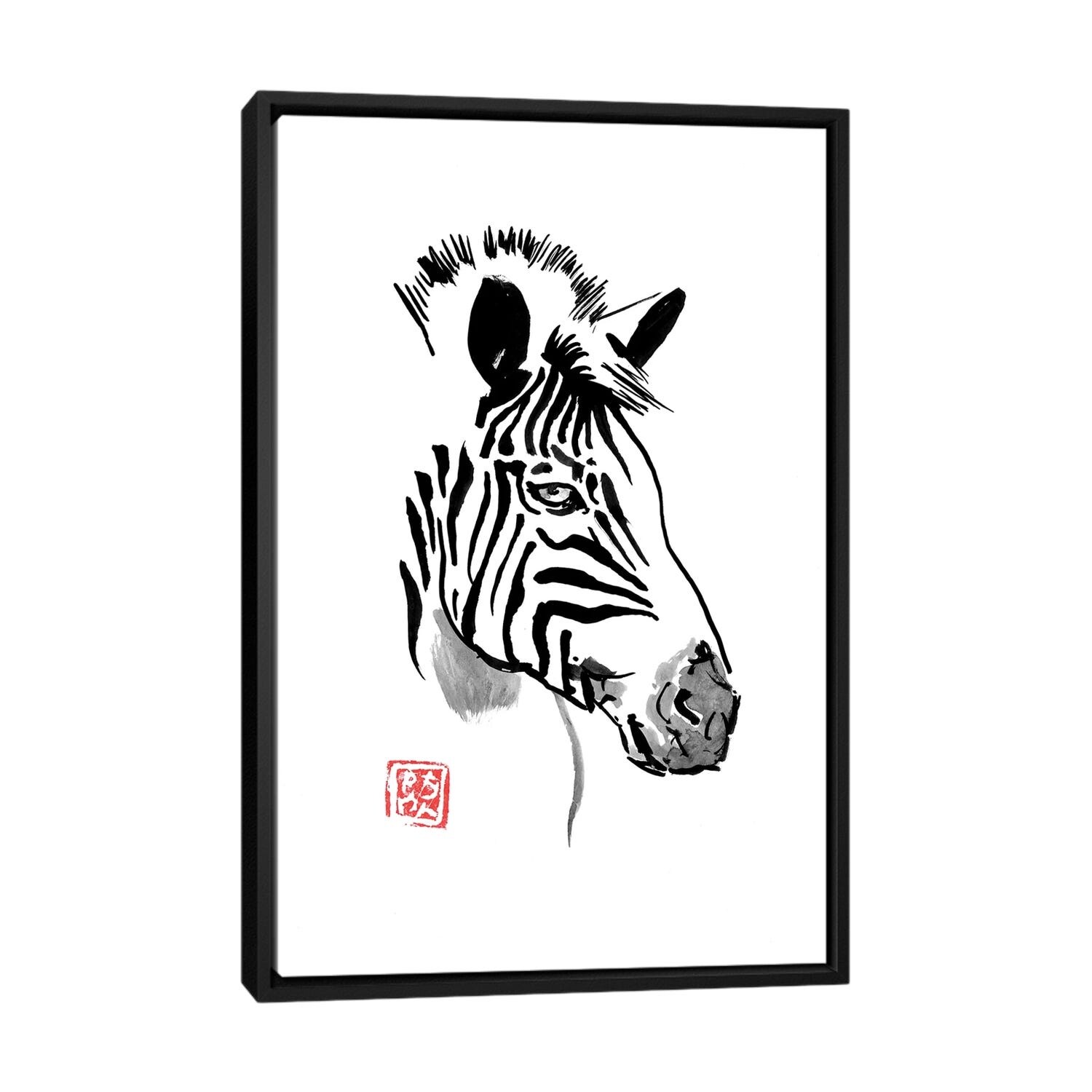 iCanvas "Zebra" by Pechane Framed|Black - 48x32