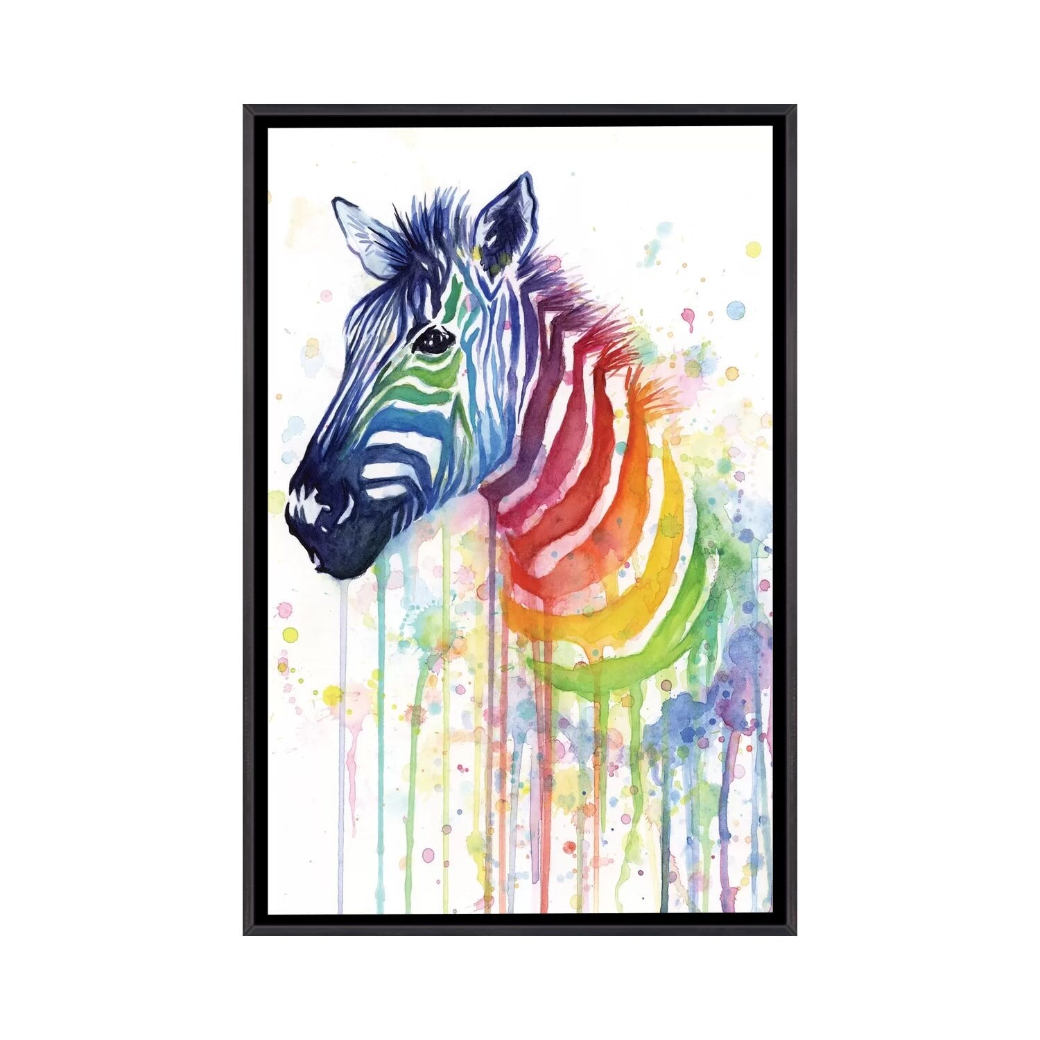 iCanvas "Rainbow Zebra" by Olga Shvartsur Framed