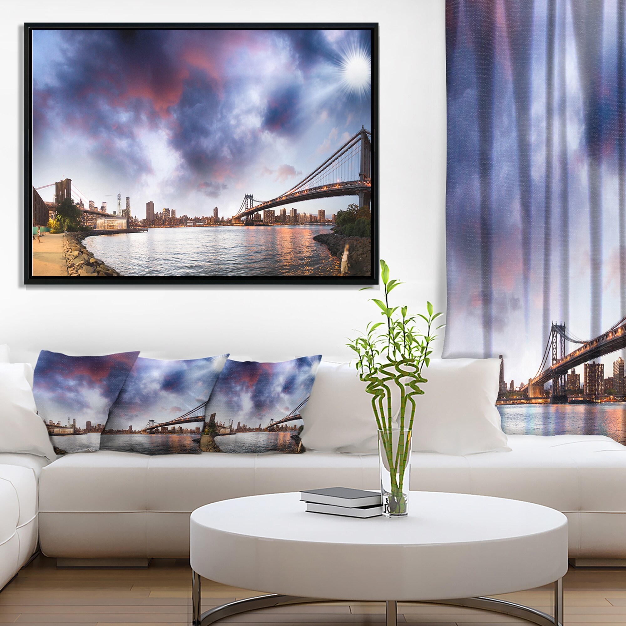 Designart "Brooklyn Bridge over East River" Cityscape Framed Canvas Print