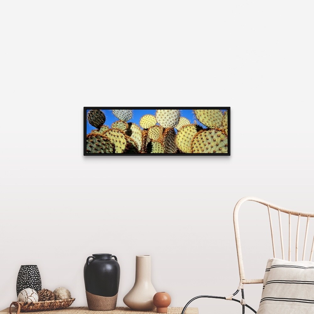 "California, Joshua Tree National Park, Close-up of Prickly Pear Cactus" Black Float Frame Canvas Art