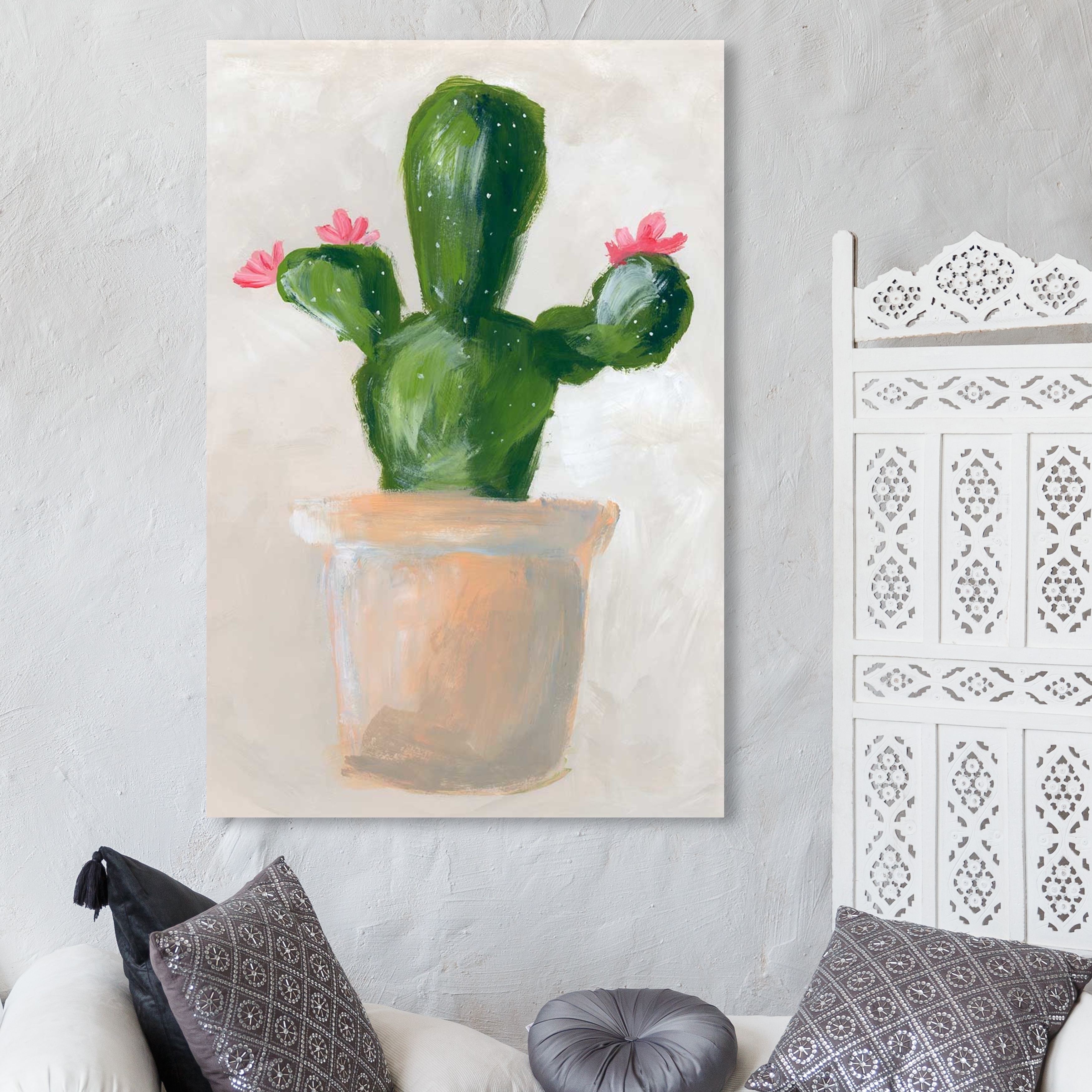 Oliver Gal 'Cactus Pink Flower' Floral and Botanical Wall Art Canvas Print - Green, Brown