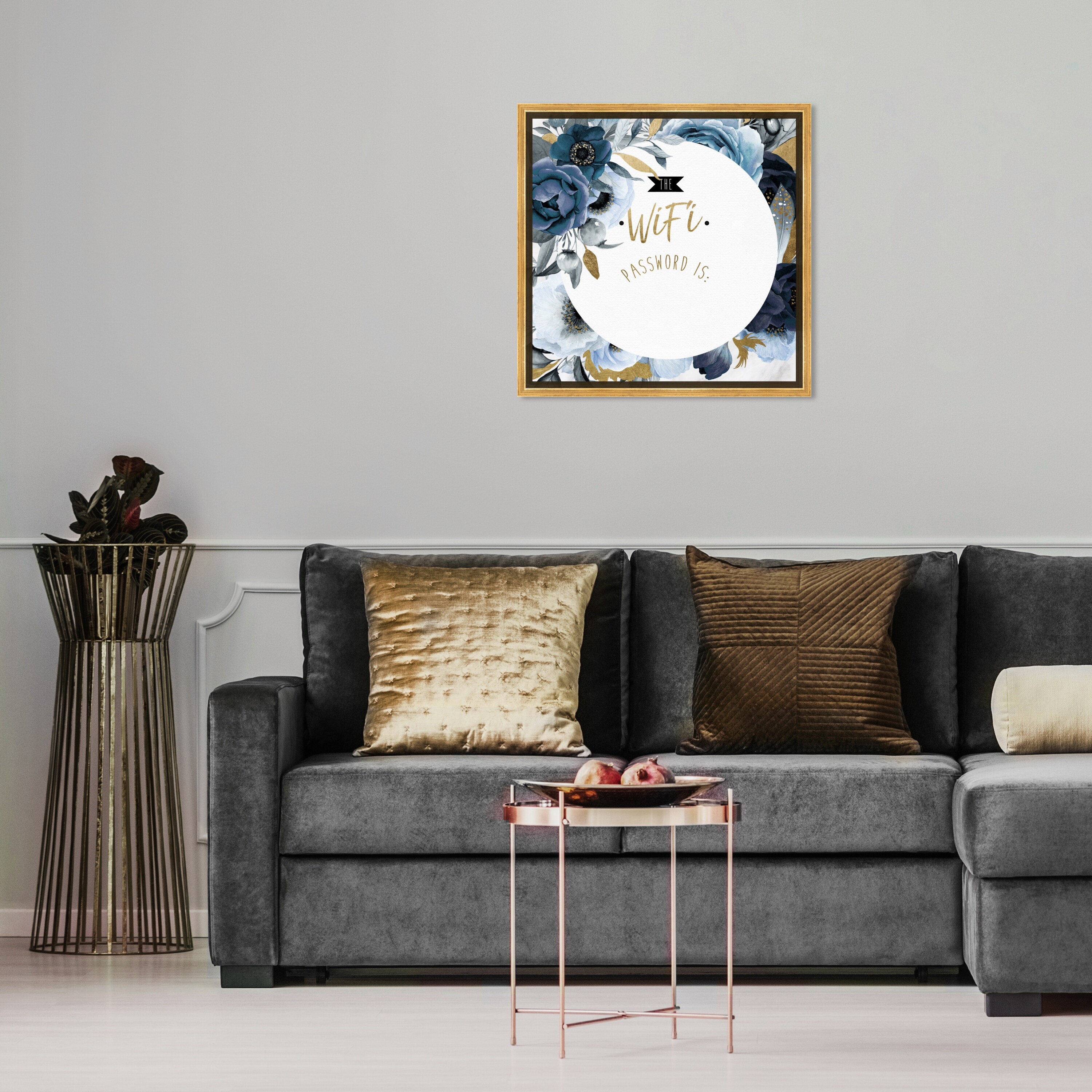 Oliver Gal 'Blue Blossoms Wifi' Floral and Botanical Wall Art Framed Canvas Print Florals - Blue, Gold