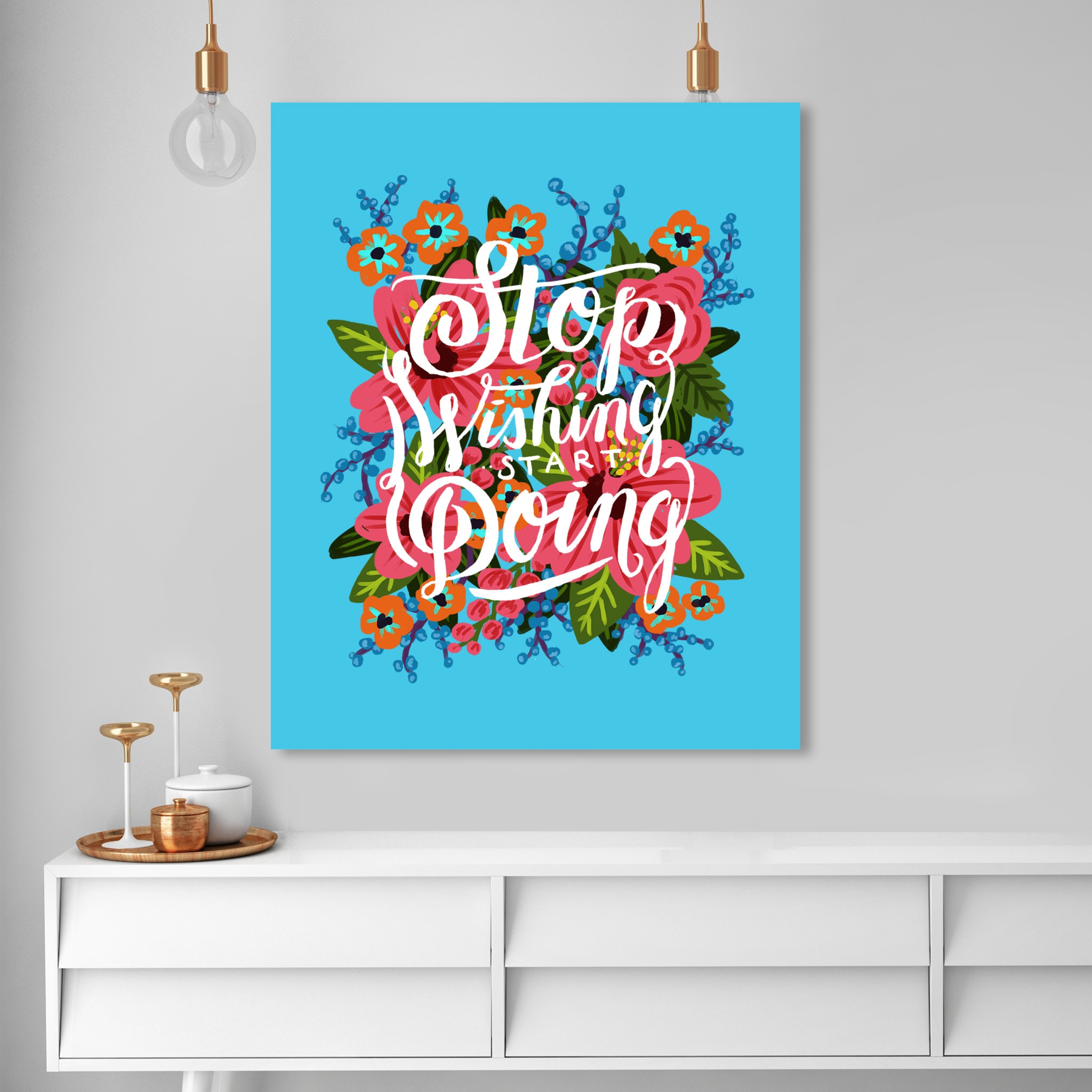 Oliver Gal 'Start Doing Blue' Typography and Quotes Wall Art Canvas Print Motivational Quotes and Sayings - Blue, Orange