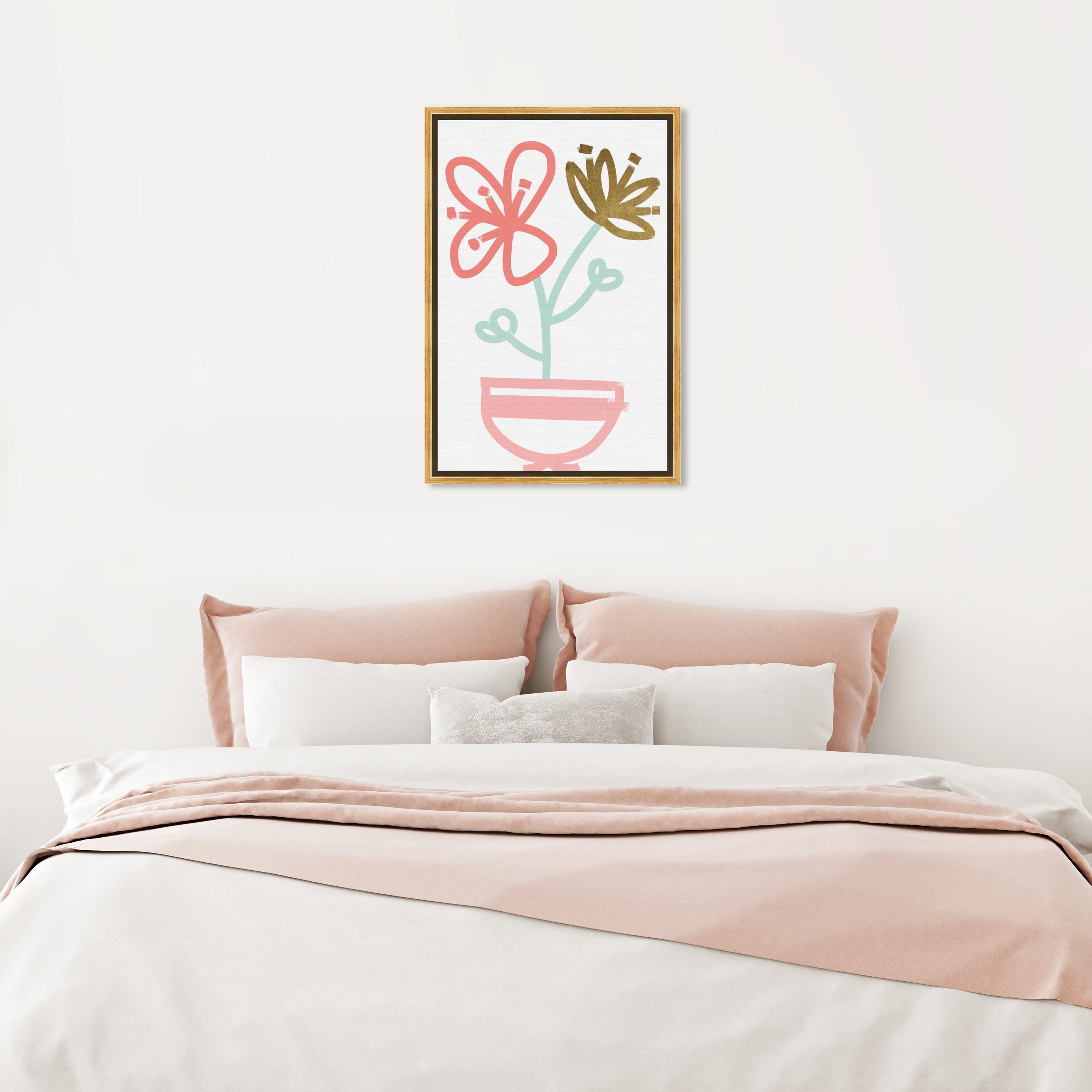 Oliver Gal 'Sparkling Flowers Wifi' Floral and Botanical Wall Art Framed Canvas Print Florals - Pink, Gold