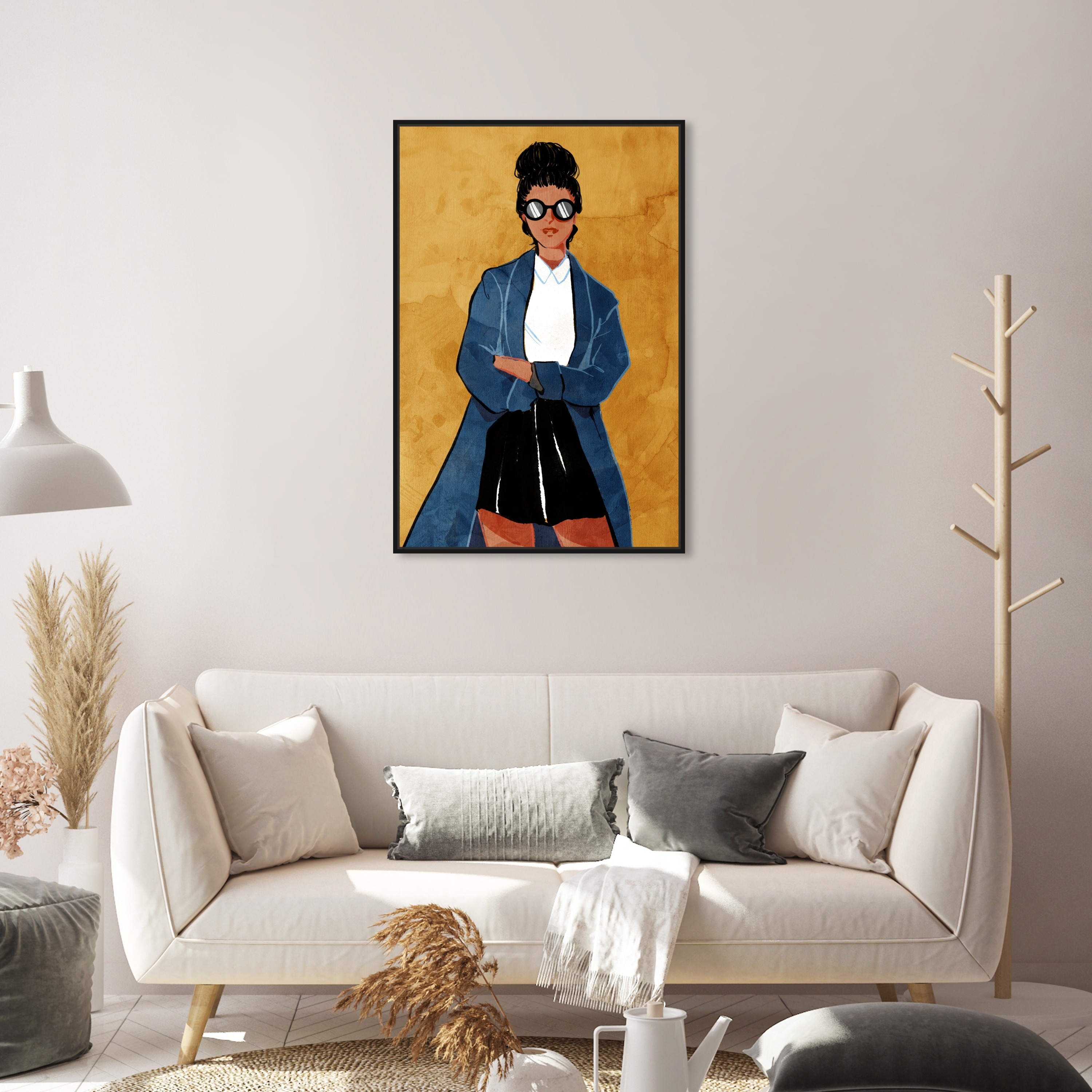 Oliver Gal 'Fall Coattail' Fashion and Glam Wall Art Framed Canvas Print Outfits - Yellow, Blue