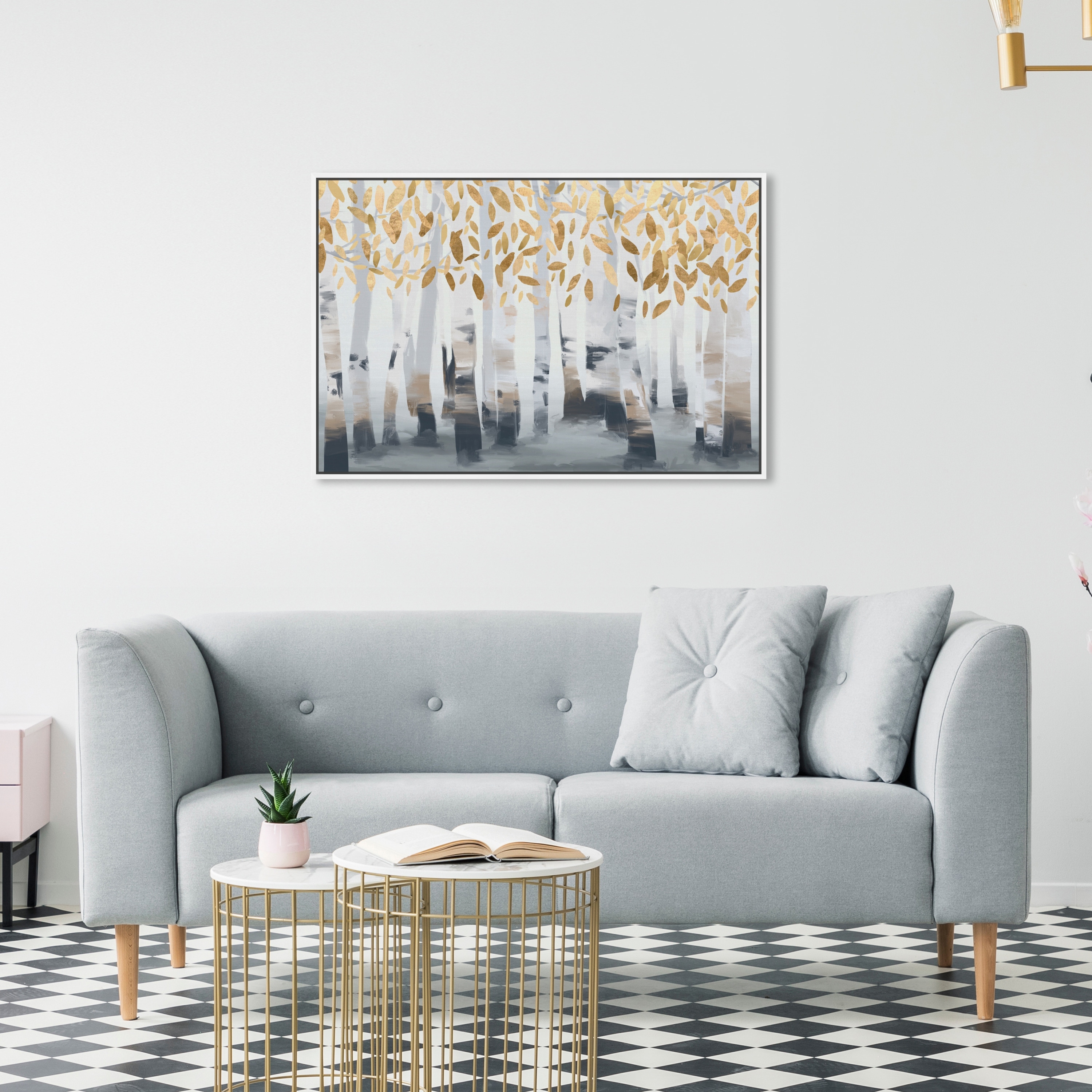 Oliver Gal 'Golden Woods White' Nature and Landscape Wall Art Framed Canvas Print Forest Landscapes - Gold, White
