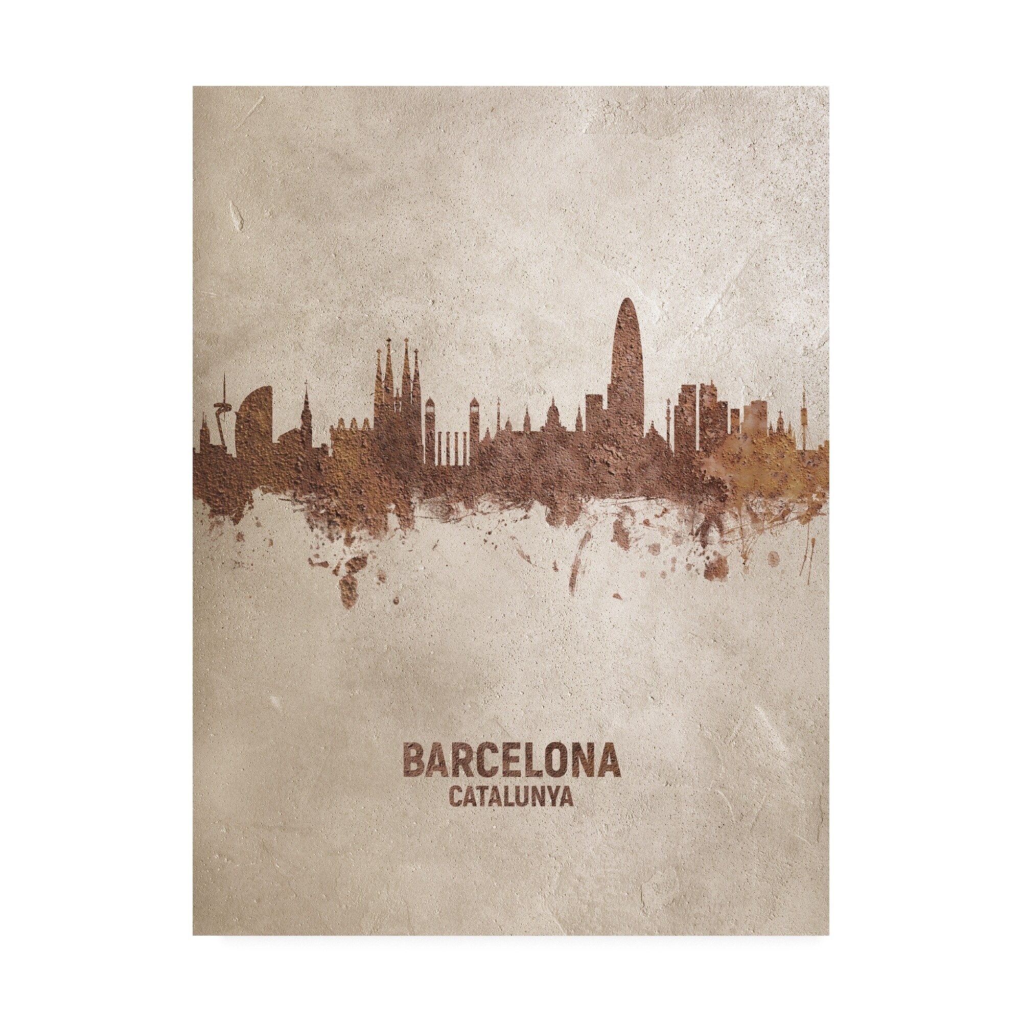 Michael Tompsett 'Barcelona Spain Rust Skyline' Canvas Art