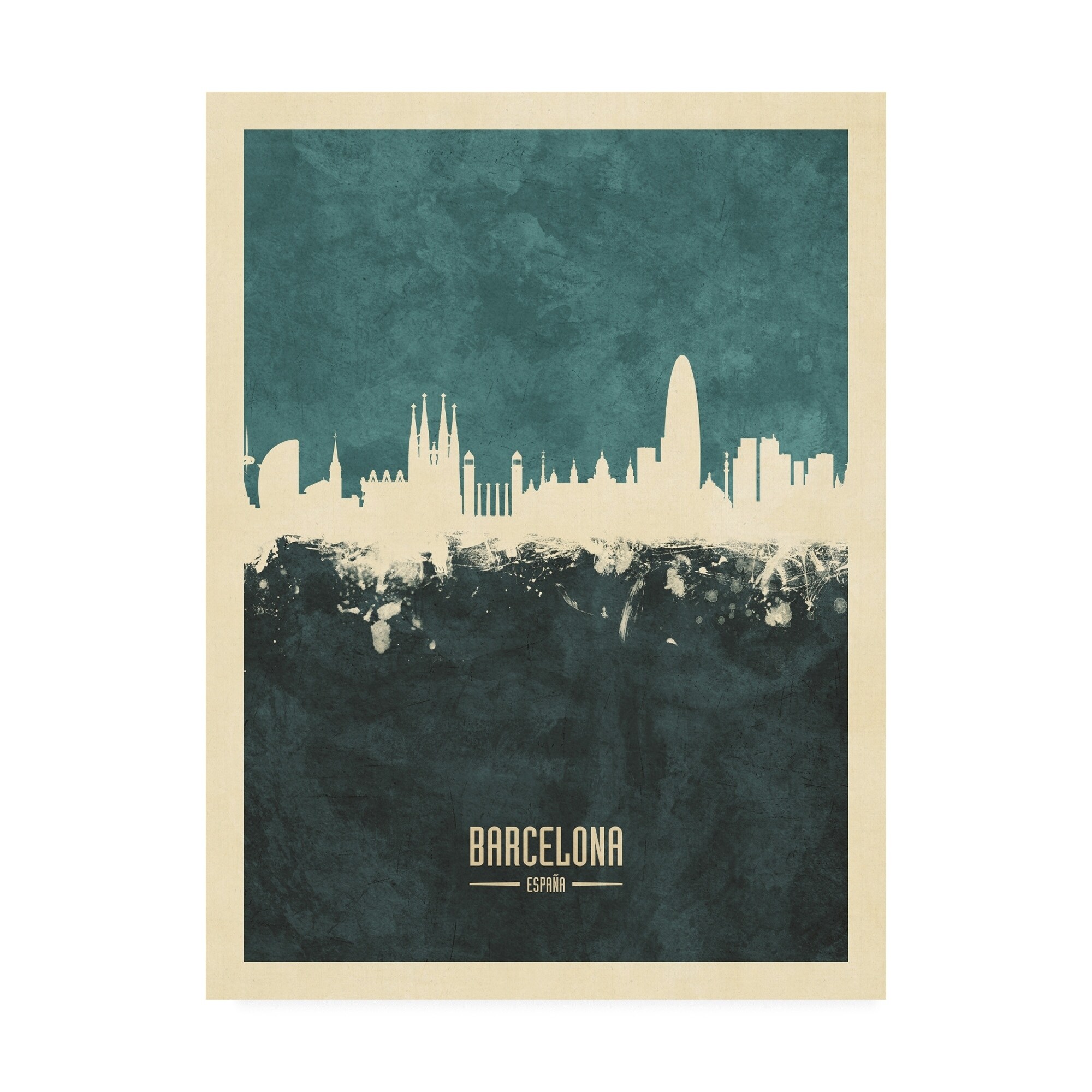 Michael Tompsett 'Barcelona Spain Skyline Teal' Canvas Art