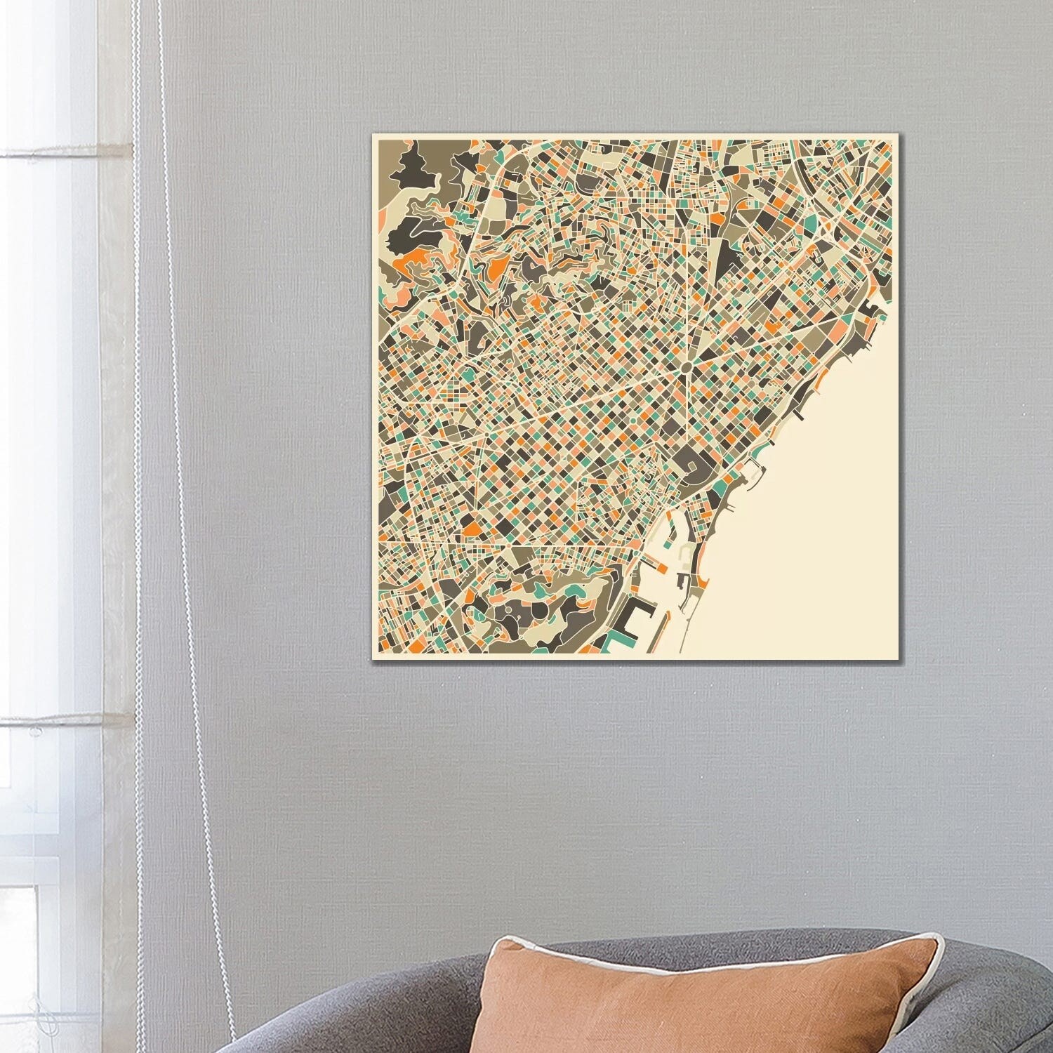 iCanvas "Abstract City Map of Barcelona" by Jazzberry Blue Canvas Print