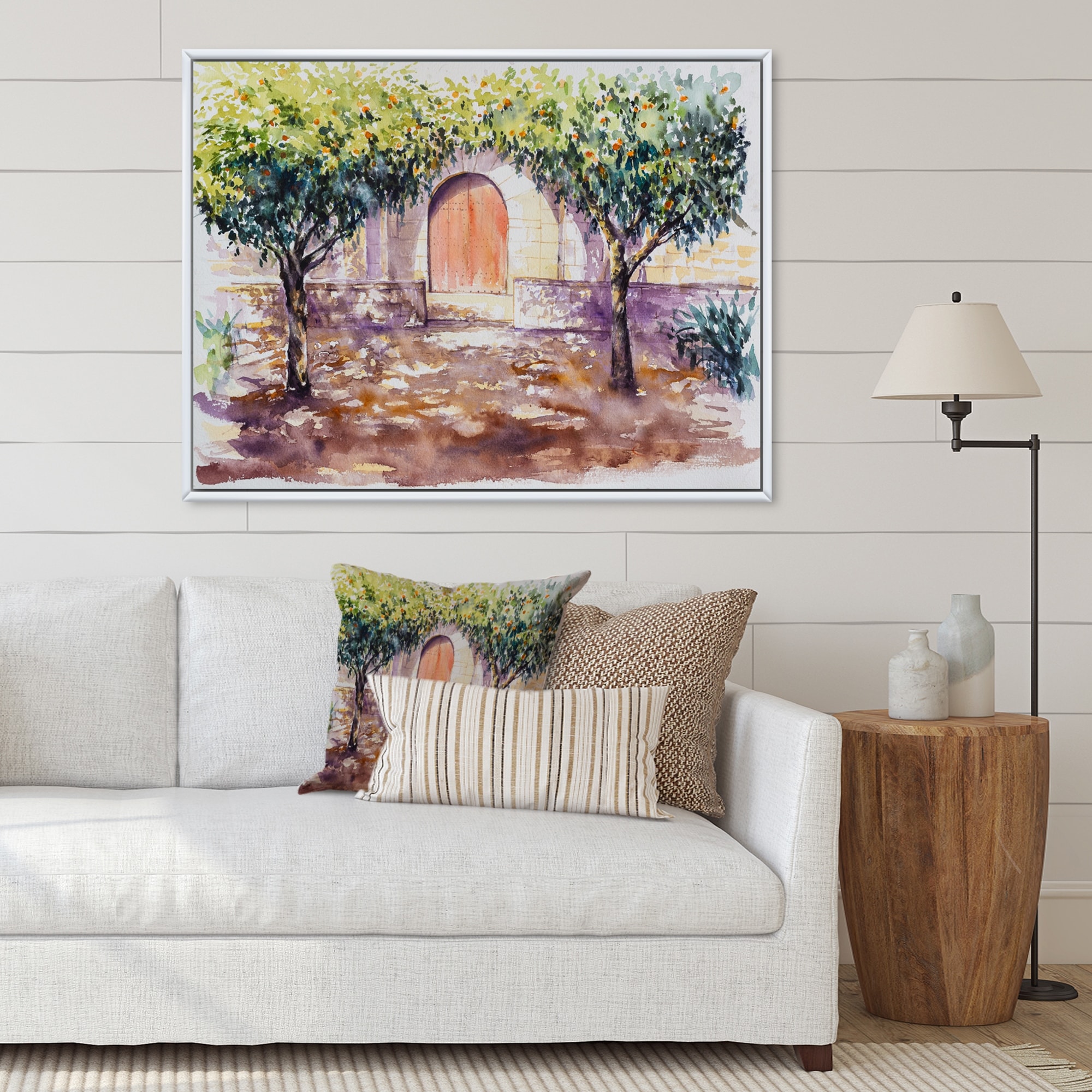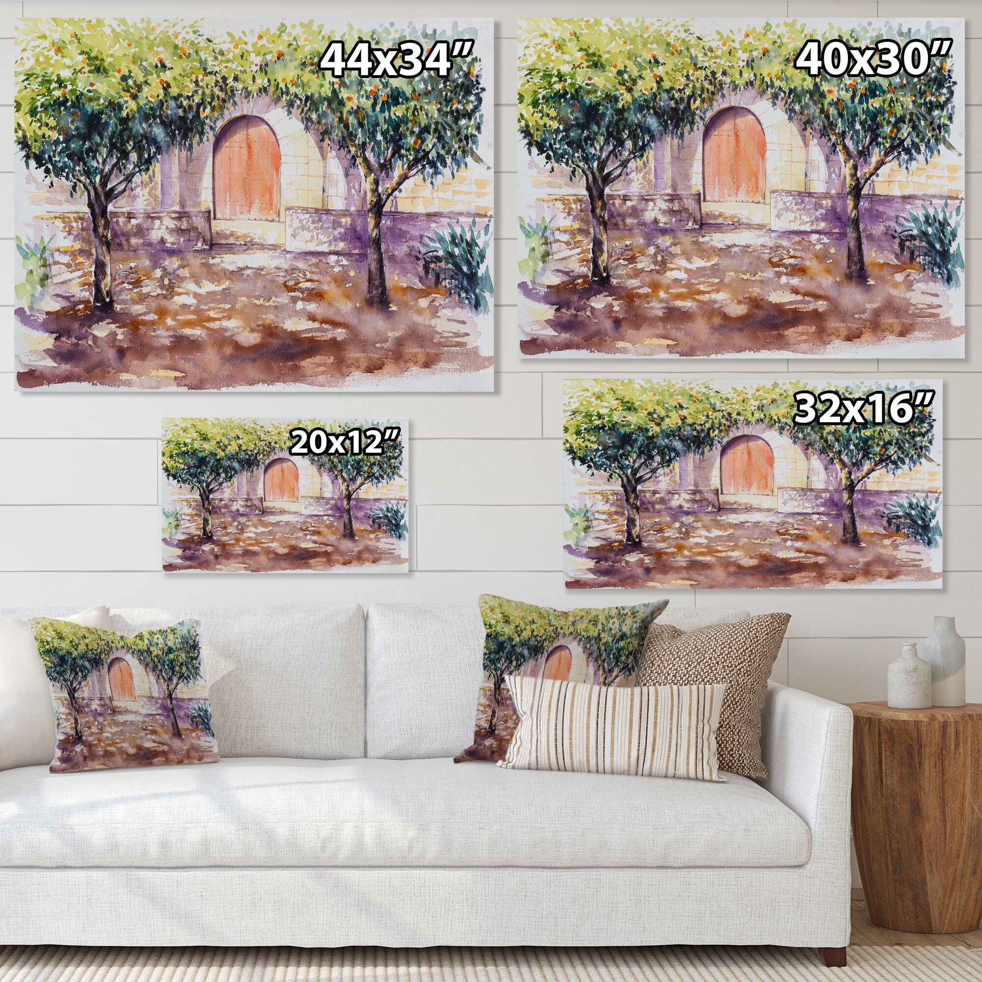 Designart "Backyard Library in Barcelona With Orange Trees" Traditional Canvas Wall Art Print