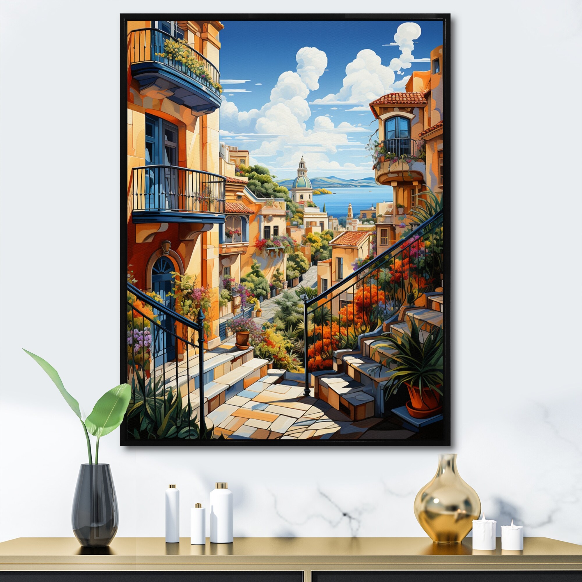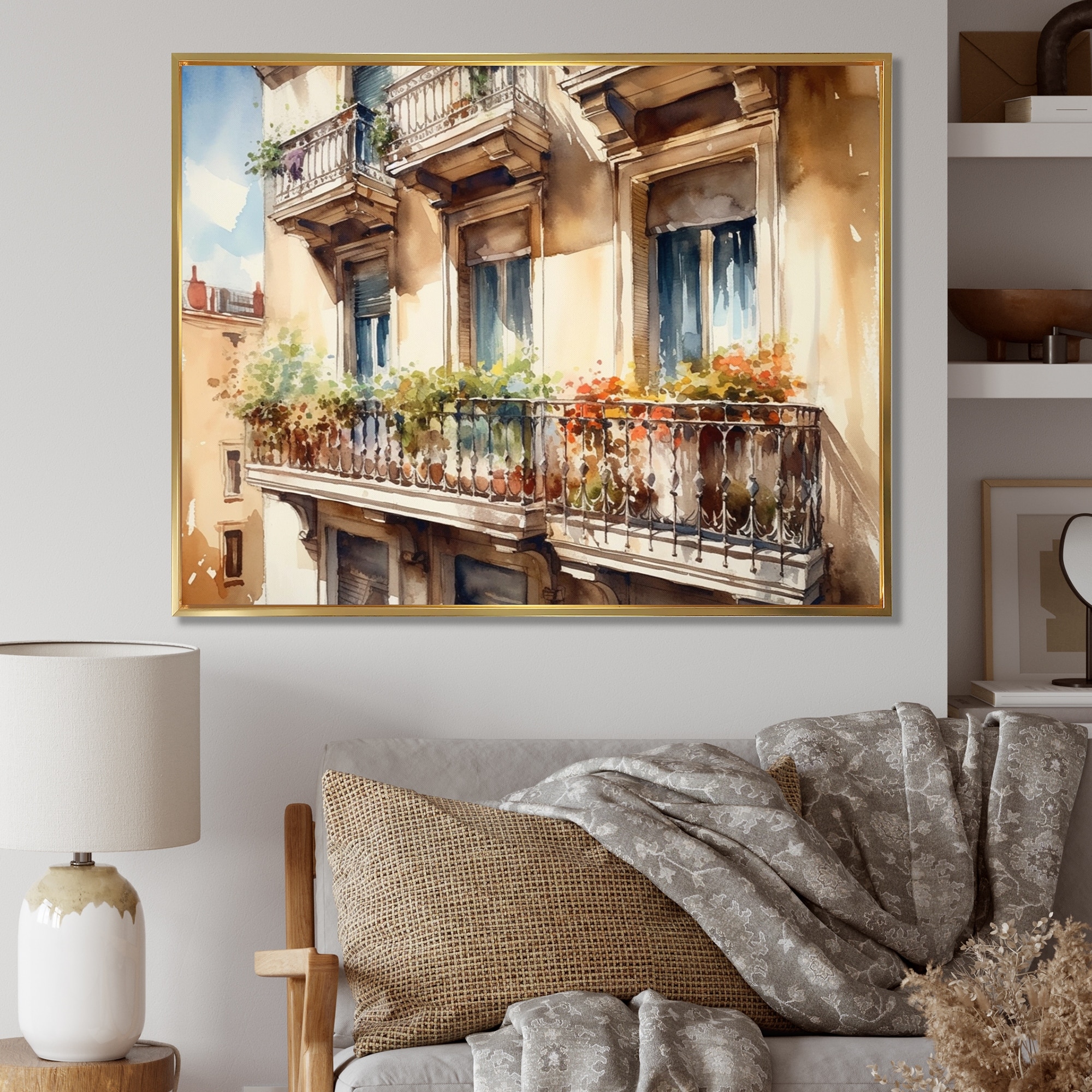 Designart "Barcelona Old World Charm I" City Art Deco Framed Canvas Print