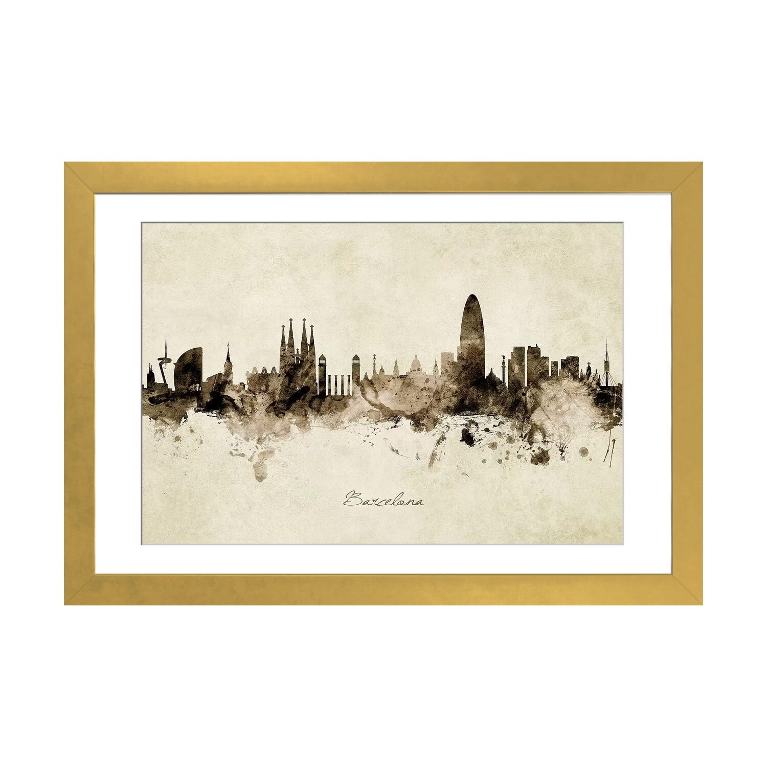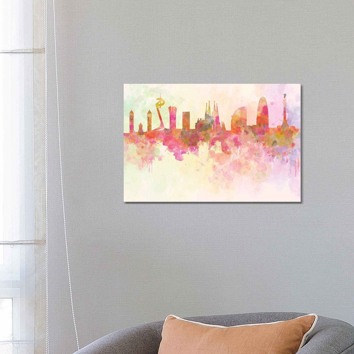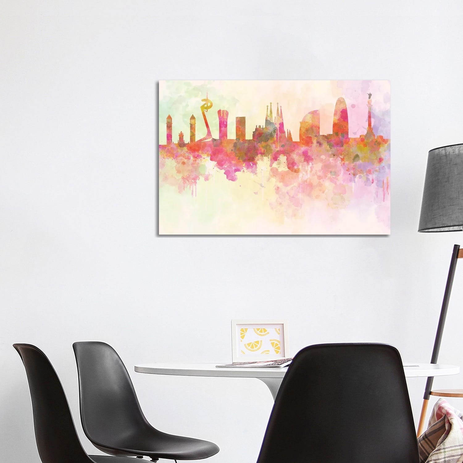 iCanvas "Barcelona Skyline in Watercolour Background" by Paul Rommer Canvas Print