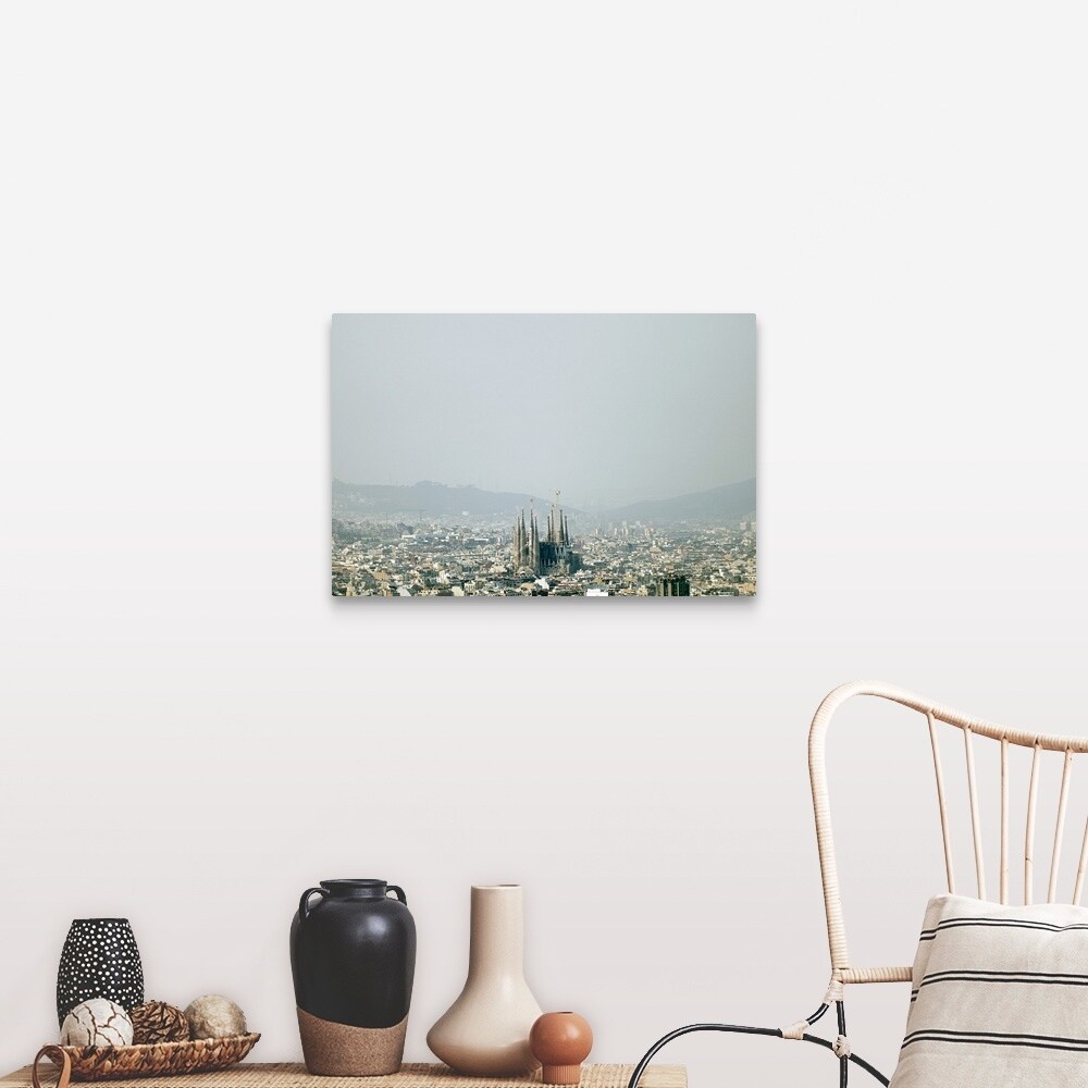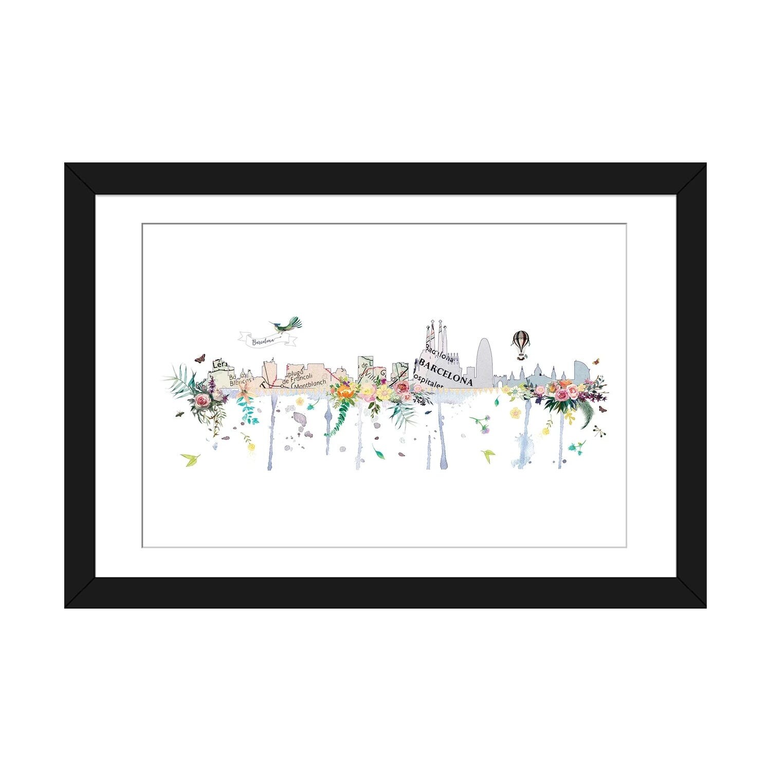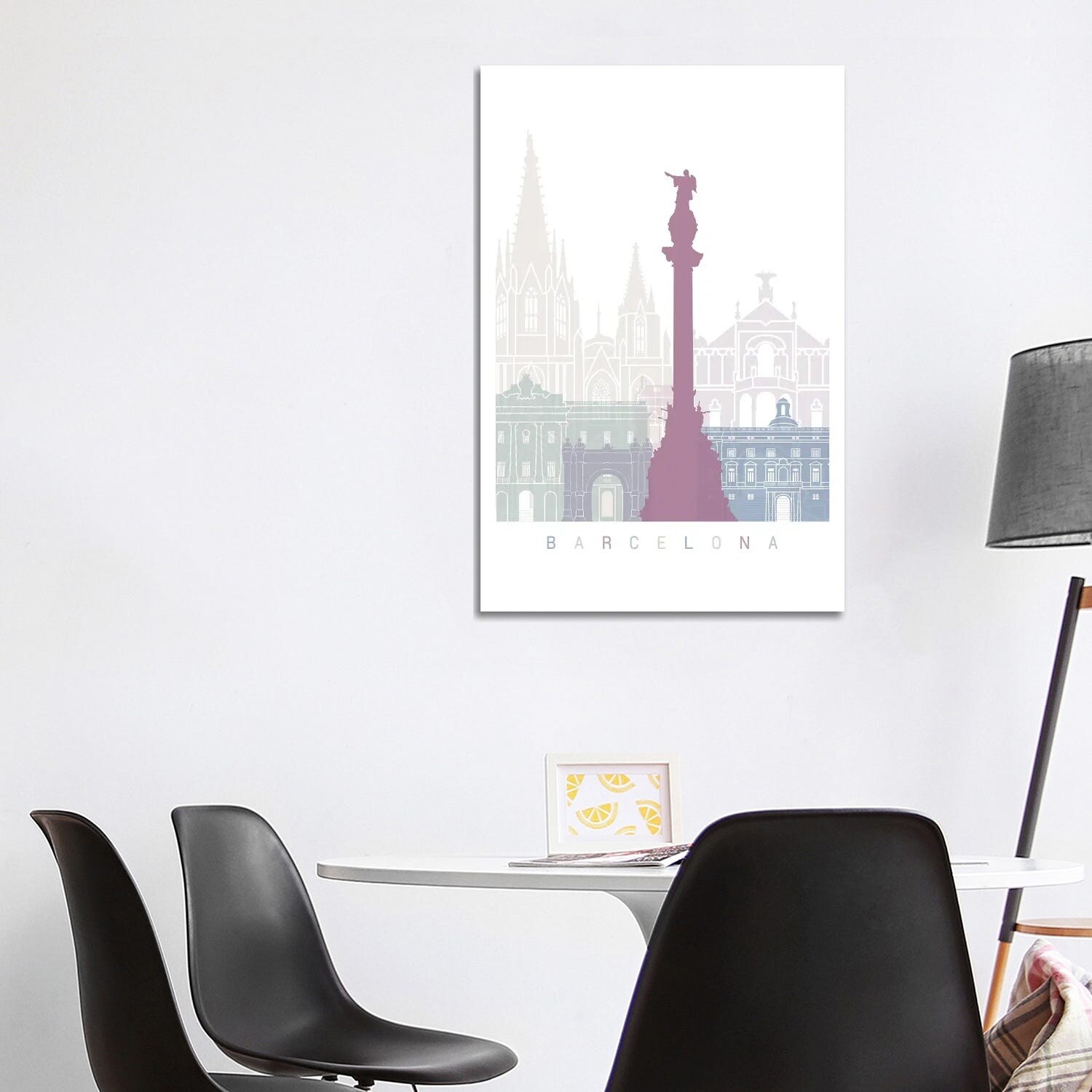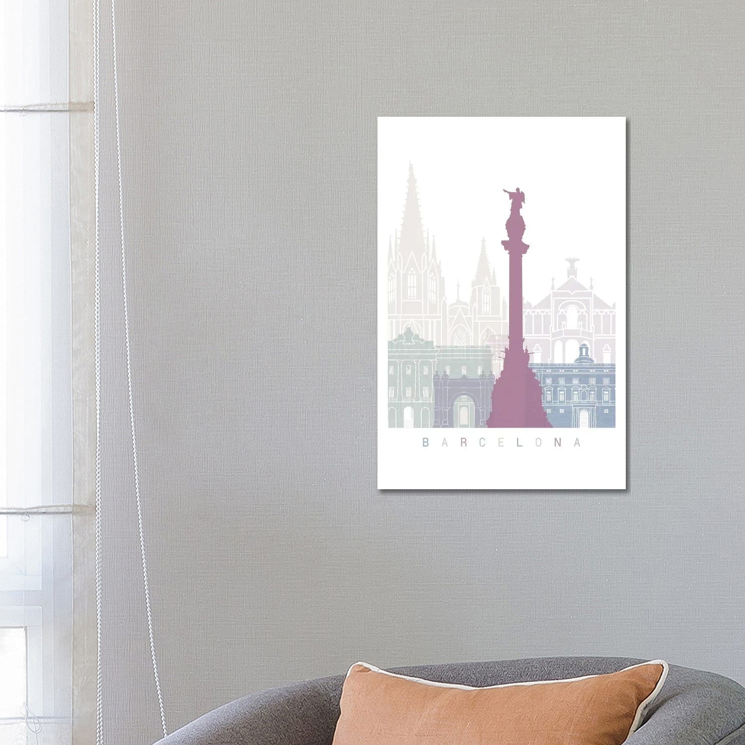 iCanvas "Barcelona Skyline Poster Pastel" by Paul Rommer Canvas Print