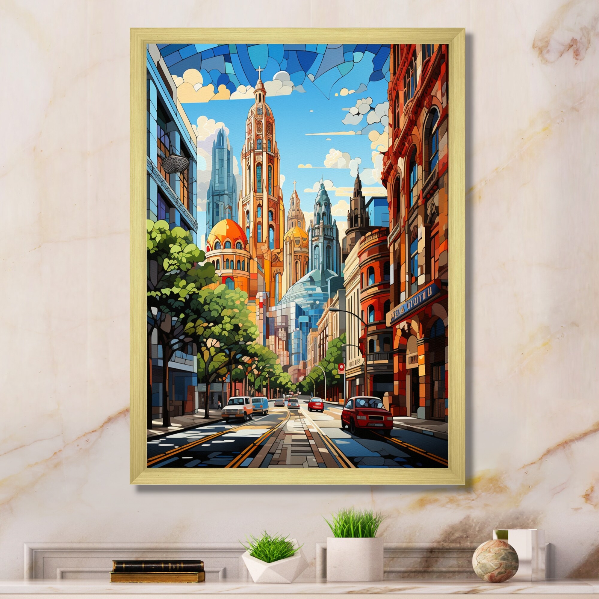 Designart "City Barcelona Popart I" Barcelona Framed Wall Decor