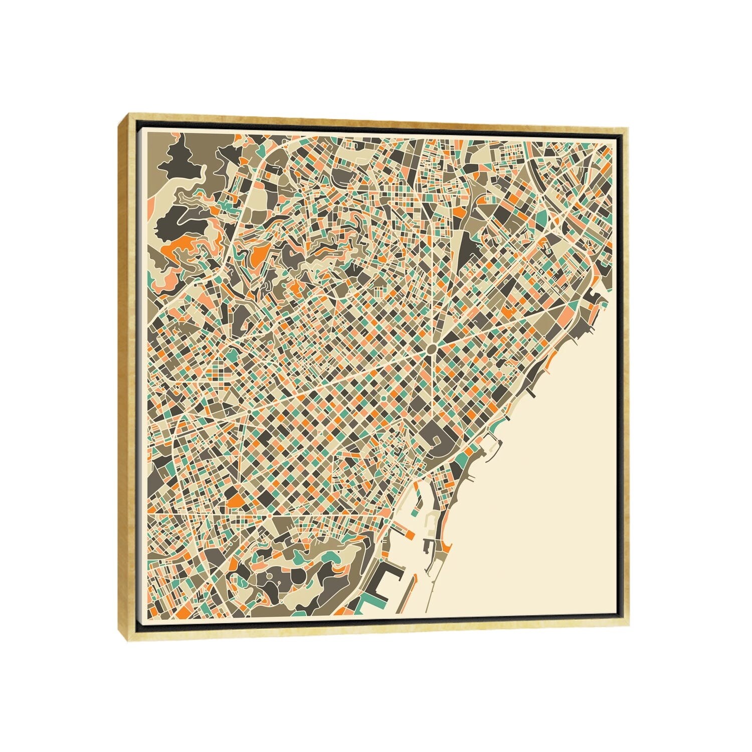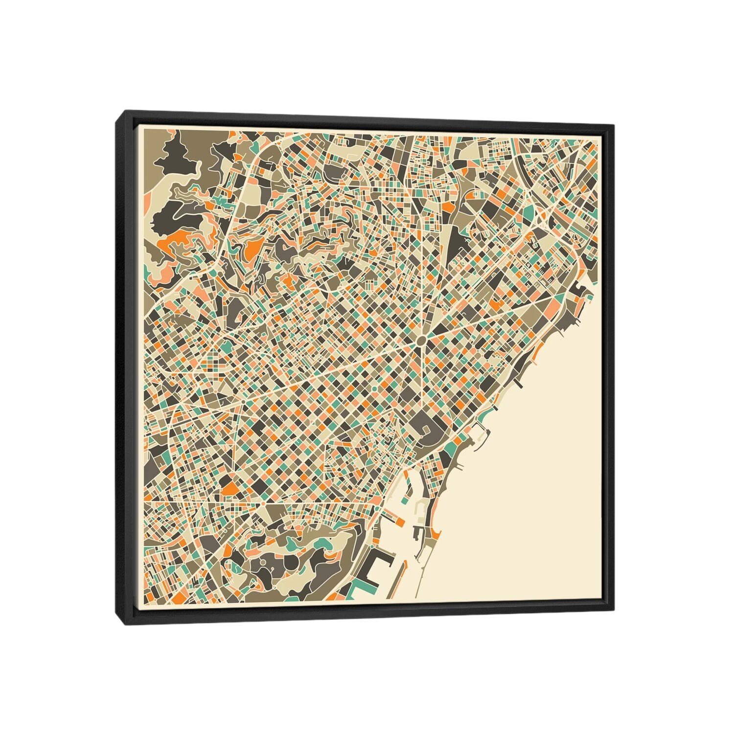 iCanvas "Abstract City Map of Barcelona" by Jazzberry Blue Framed Canvas Print