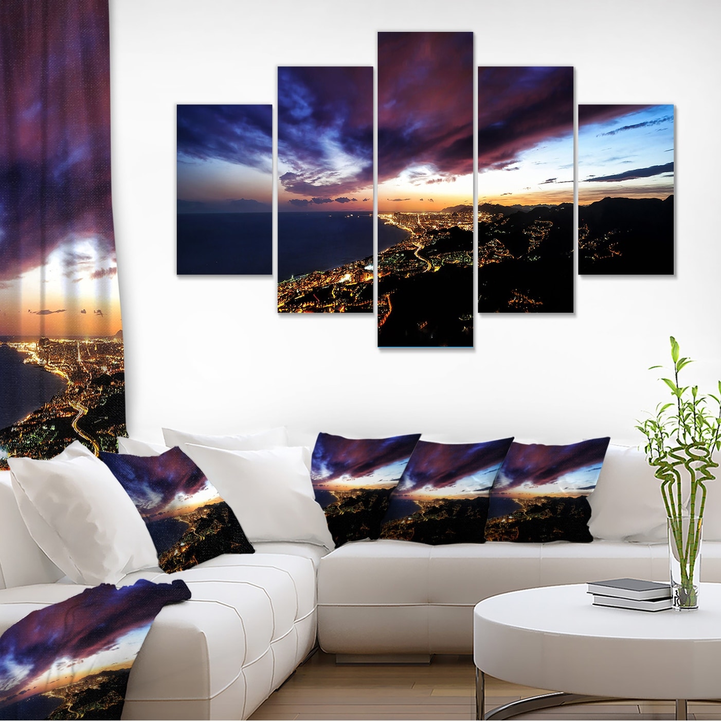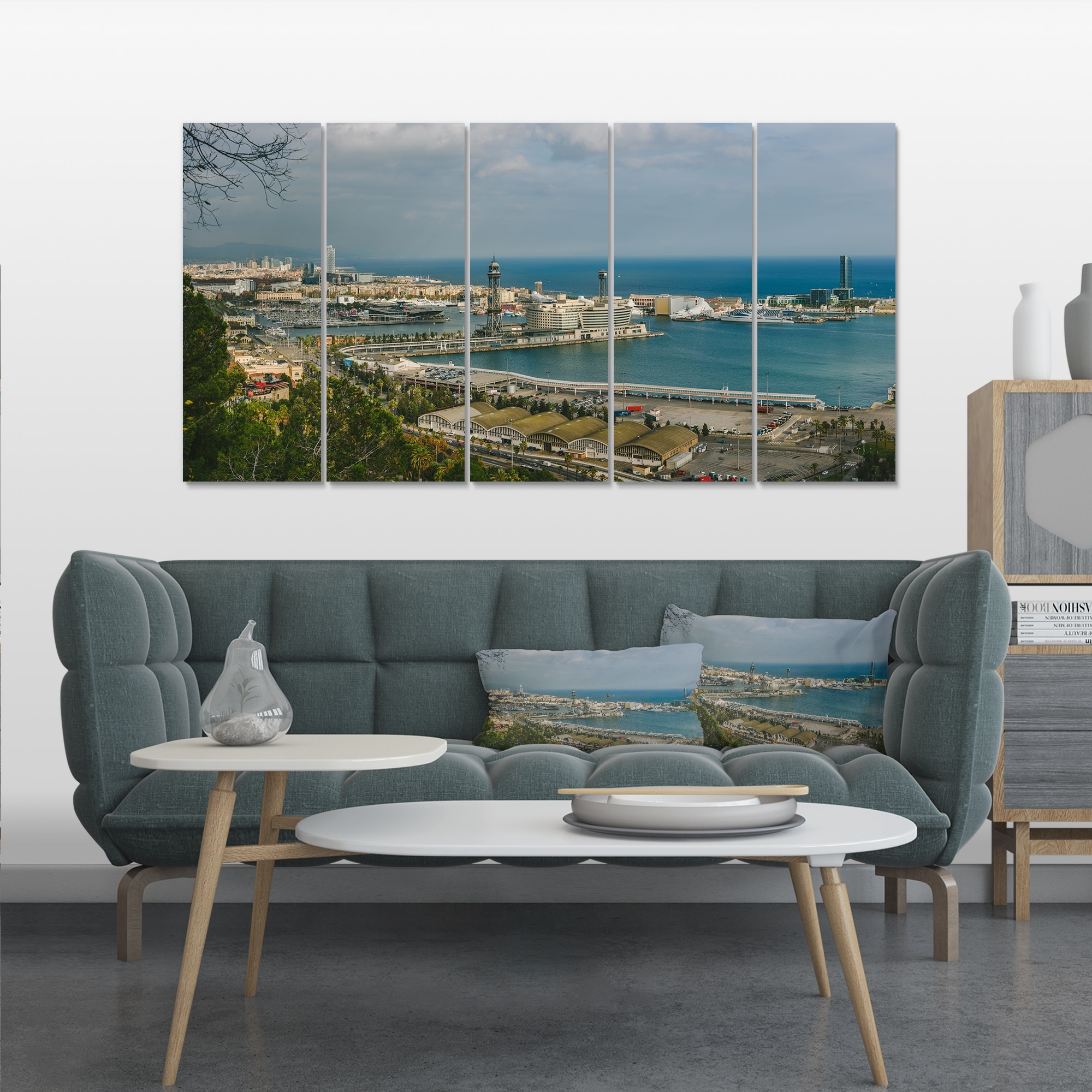 Designart "Barcelona Skyline Panorama" Cityscape Canvas Art Print