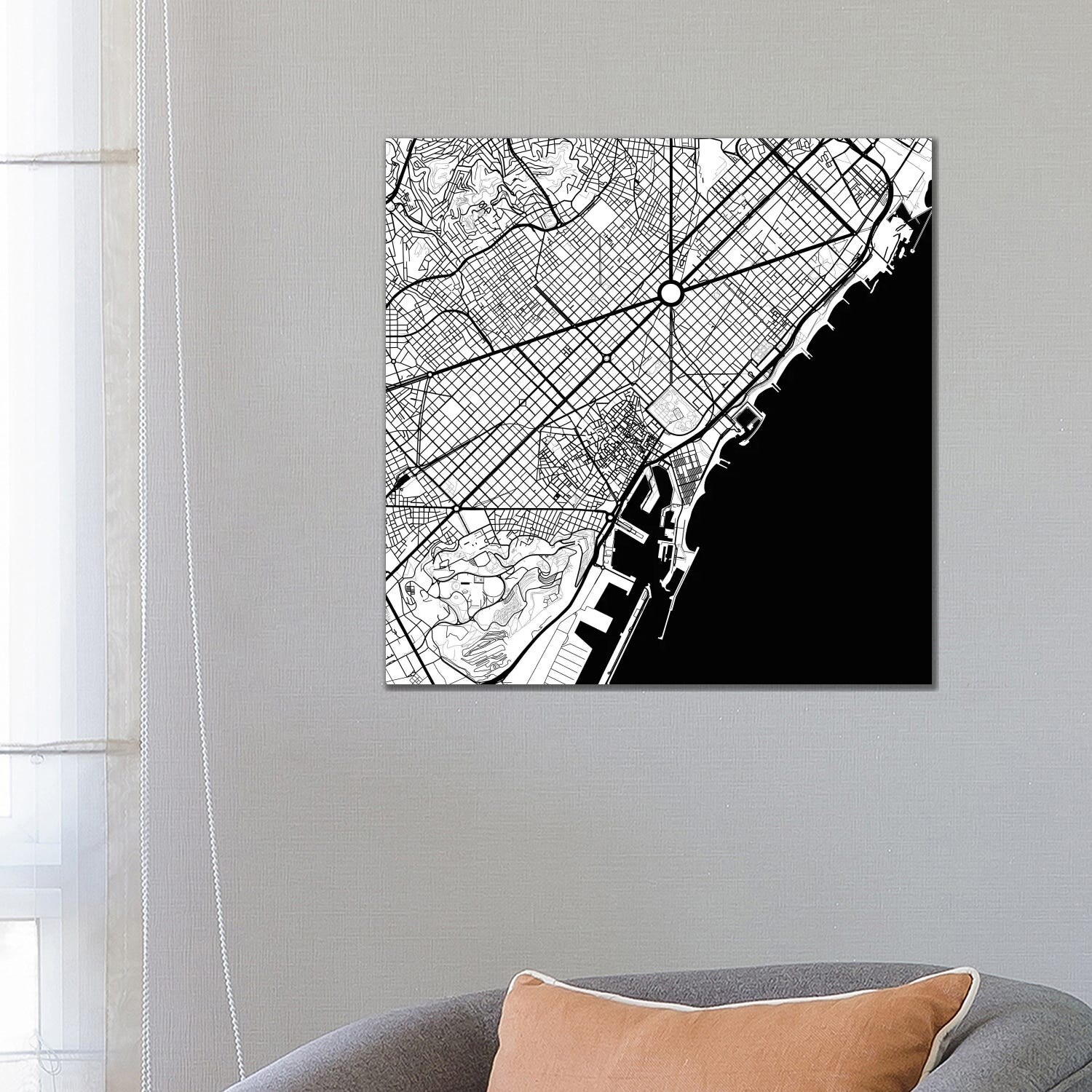 iCanvas "Barcelona Urban Map (Black)" by Urbanmap Canvas Print