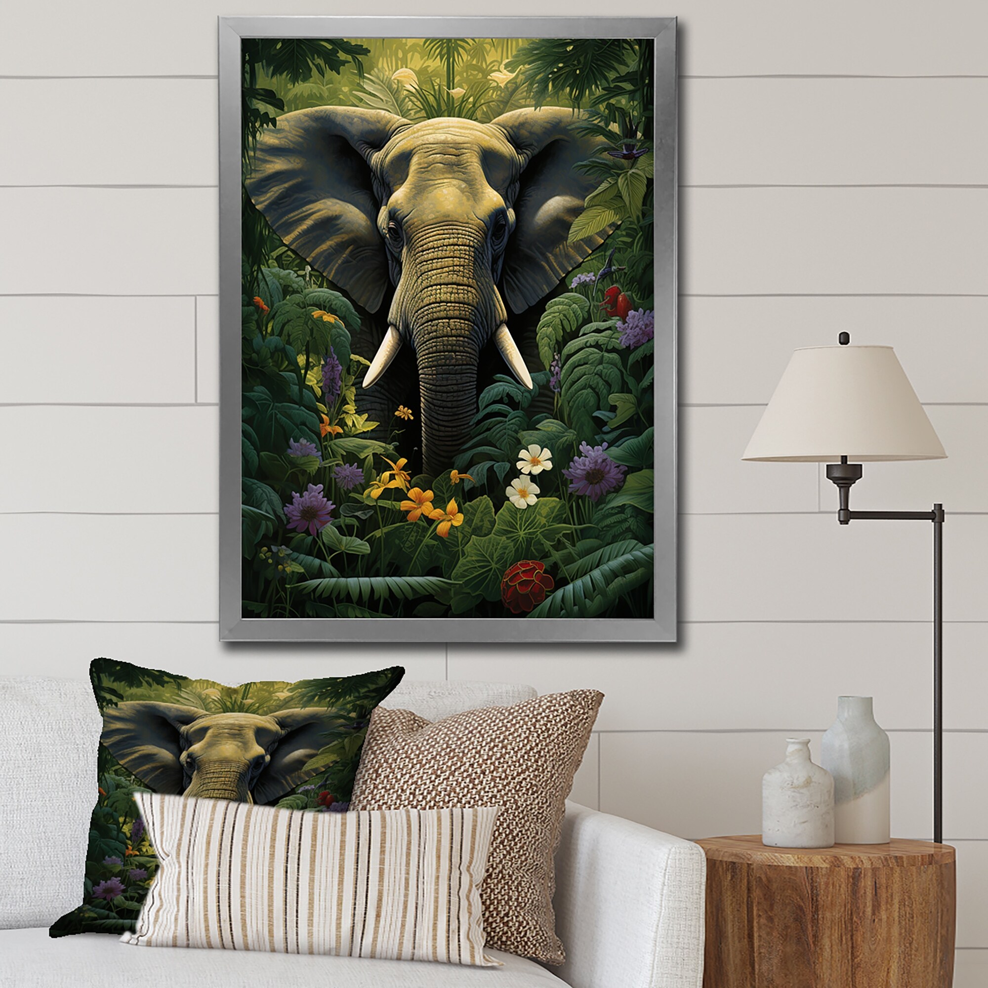 Designart "Elephant Jungle Sanctuary III" Animals Elephant Framed Canvas Prints